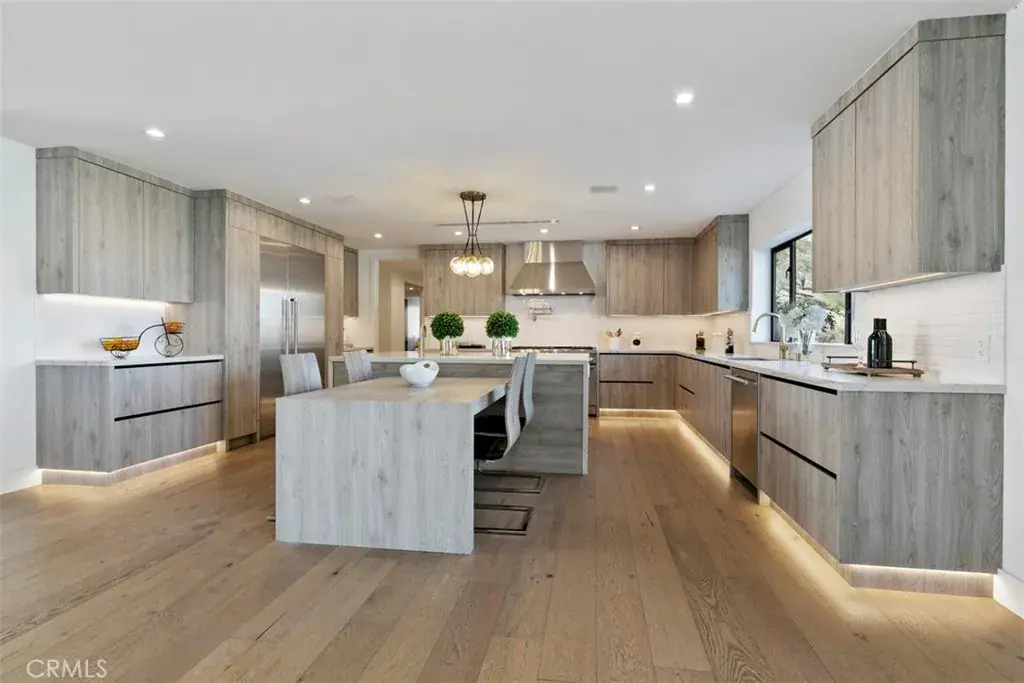 Stunning modern farmhouse, fully rebuilt in 2018, located south of the Boulevard on one of Encino’s most private and sought-after streets. This exceptional residence offers approximately 5,400 square feet of thoughtfully designed living space, featuring 6 bedrooms, 5.5 bathrooms, a library, private theater, and a fully equipped outdoor kitchen.
