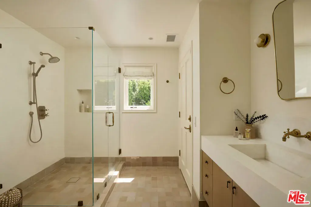 Tucked discreetly behind a wrought-iron gate and up a long, picturesque driveway that crosses a charming bridge, this beautifully reimagined ranch-style retreat offers a rare blend of privacy and allure. Sheltered beneath a canopy of oak trees and framed by vibrant rose gardens, the home exudes warmth and sophistication. Meticulously remodeled with high-end finishes and an exceptional eye for detail by interior designer Paula Bruss, the single-story residence is filled with natural light, thanks to expansive windows that capture the sun from dawn to dusk. Vaulted ceilings, refined stone and tile work, designer fixtures, and architectural character elevate every room with timeless charm. French doors open to an enchanting backyard oasis, with a spectacularly oversized swimming pool and lush green lawn perfect for relaxing, entertaining, or simply enjoying the serenity of nature. The long paver-stone driveway leads to a spacious motor court with ample parking, in addition to a two-car attached garage. A separate, private guest house complete with a full bathroom and kitchenette offers ideal accommodations for guests, extended family, or a home office. The main residence includes three bedrooms (one of which is currently converted into a custom closet but can be easily reverted), spanning approximately 3,770 sq ft. The guest house adds an additional approximate 400 sq ft of well-appointed living space.