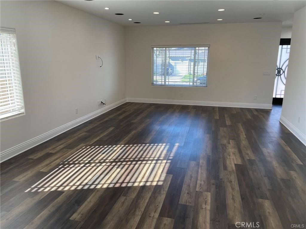 Wood like flooring and recessed lighting throughout. Convenient laundry area next to the kitchen.