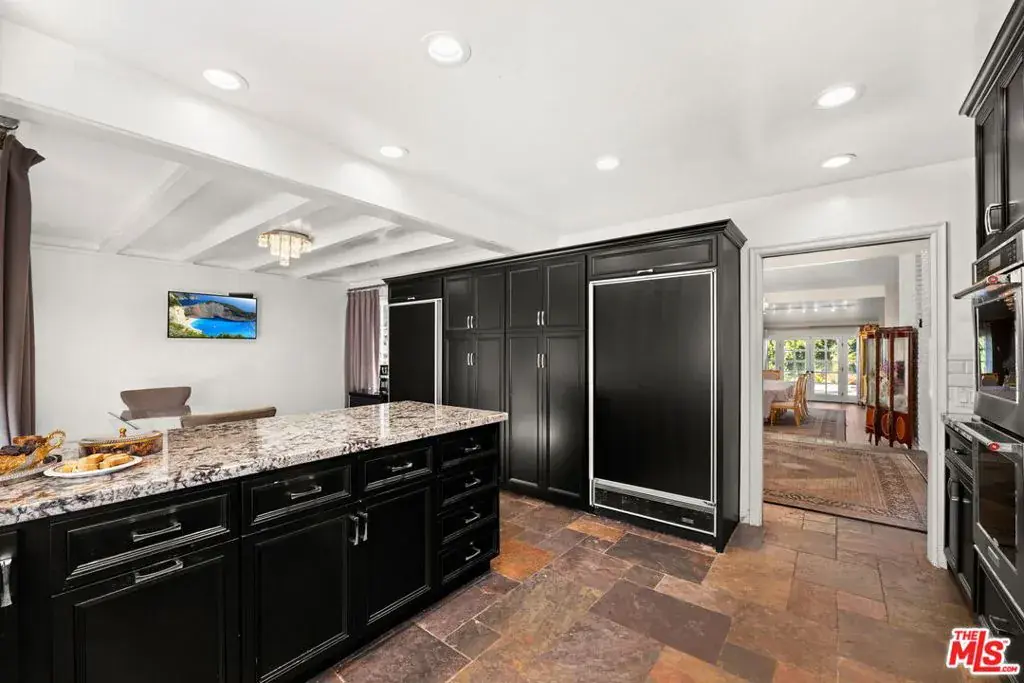 Spanning over 5,300+ square feet of elegantly designed living space on an expansive 17,000+ square foot lot, this South of the Boulevard estate in Encino offers a rare blend of architectural scale and modern sustainability. Upon entry, you are greeted by soaring high ceilings and a grand double-sided fireplace that anchors the formal living and dining rooms. The main level is designed for both effortless luxury and multi-generational living, uniquely featuring the expansive primary suite on the first floor. This sanctuary boasts a cozy fireplace, an intimate sitting room, and a massive walk-in closet as well as a spa-like bathroom. Also located on the main level for ultimate convenience are a dedicated private office for the work from home professional and an additional secondary ensuite guest bedroom. The heart of the home is the chef’s kitchen, which features custom cabinetry, high-end stainless steel appliances, and a Sub-Zero refrigerator. Adjacent to the kitchen is a charming breakfast room, where French doors lead out to a patio where you can enjoy your morning coffee. For those who love to host, a sophisticated wet bar serves the main living areas with ease. The second level of the home expands to meet every family need, offering four spacious bedrooms, two full bathrooms and a versatile loft that serves as a secondary hub, perfect for game night or a homework station. Modern comforts are integrated throughout, including a multi-zone HVAC system, fully paid-for solar panels, an EV charging station and a spacious two car garage with lots of storage. The outdoor grounds are a true resort destination, featuring a heated sparkling pool and a private sport court. A great place to host a game of pickleball! As the sun sets, dine alfresco to enjoy the serene Encino evenings. Ideally located just moments from the premier shops and world-class dining of Ventura Boulevard, this 6-bedroom, 5-bathroom masterpiece offers the ultimate California lifestyle in one of the Valley’s most coveted pockets.