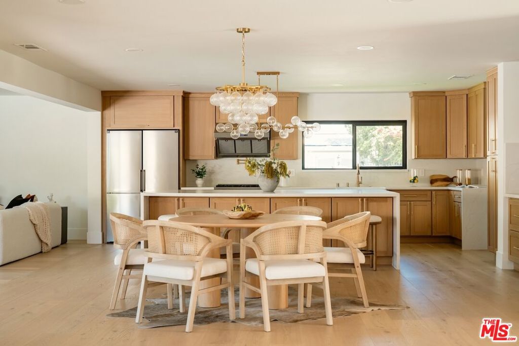 Tucked away within Encino’s coveted Amestoy Estates on a generous corner lot, this thoughtfully reimagined single level estate blends timeless design with effortless California living. Flooded with natural light, the home features bifold doors and expansive windows that create a seamless connection between the interior living spaces and the backyard. The open concept layout flows effortlessly between the kitchen, living room, family room, and dining areas, creating an inviting setting for both everyday living and effortless entertaining. The thoughtful layout offers a comfortable balance of open living spaces and well separated bedroom areas. The spacious primary suite offers a peaceful retreat with large sliders framing tranquil backyard views, a spa inspired bathroom featuring dual vanities and a walk in shower, and generous closet space. Four additional bedrooms provide flexibility for family, guests, or a dedicated home office, with one thoughtfully positioned for added privacy. Designed for true indoor outdoor living, the space opens to a backyard retreat that feels like your own resort, complete with a PebbleTec pool with cascading water features, multiple lounge and dining areas, a built in BBQ, and a lush green lawn surrounded by mature landscaping that provides plenty of space to relax, entertain, and enjoy the grounds. The beautifully landscaped front grounds create striking curb appeal while the expansive driveway provides generous parking and a grand sense of arrival. Set on over a quarter acre flat lot just moments from Ventura Boulevard’s premier dining, shopping, and entertainment destinations, this is an exceptional opportunity to own in one of Encino’s most sought after neighborhoods.