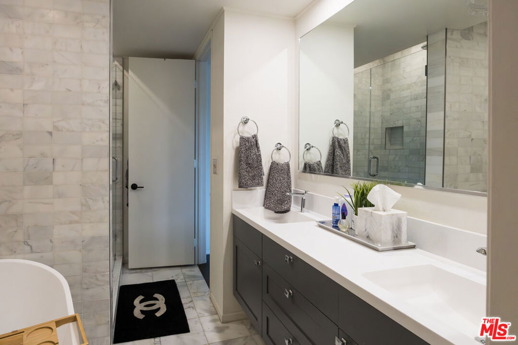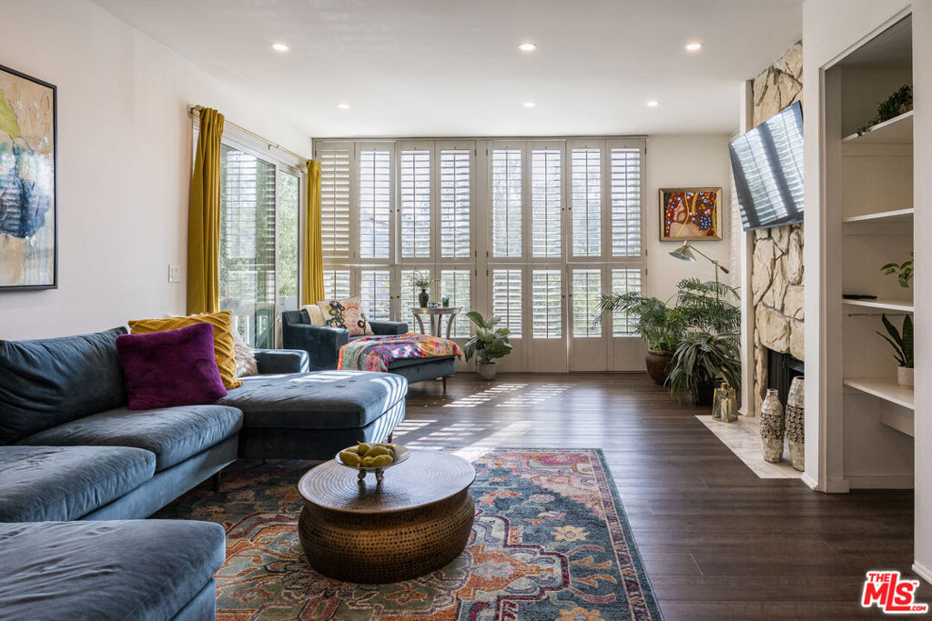 Welcome to this beautifully renovated and spacious residence set within a lush, resort-style community in the heart of Encino. Thoughtfully updated with new dual-pane windows, recessed lighting and new flooring throughout, the home offers an inviting atmosphere and a flexible floor plan that includes a versatile den or office easily convertible to a third bedroom. The bright and airy living room features a striking stone fireplace and opens to a large private balcony perfect for relaxing or entertaining. The open-concept kitchen is appointed with custom Shaker-style cabinetry, generous counter space, and a convenient breakfast bar for casual dining. The primary suite offers a walk-in closet and an elegant en-suite bathroom finished with marble and mosaic tile, high-end fixtures, and a separate soaking tub. A second bedroom, guest bathroom, in-unit laundry area, and additional storage complete this expansive floor plan. Located within a gated and private community surrounded by lush landscaping and mature trees, residents enjoy a resort-style setting with amenities that include a sparkling pool, indoor spa, sauna, recreation room, and beautifully maintained grounds. The unit includes two side-by-side parking spaces in a secure garage, a private storage locker, and ample guest parking. Ideally situated within walking distance to Ventura Boulevard, Trader Joe’s, premier shopping, dining, and convenient freeway access. An excellent opportunity to enjoy comfortable living in a prime location or acquire a strong investment property.