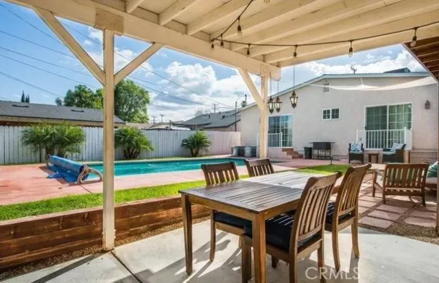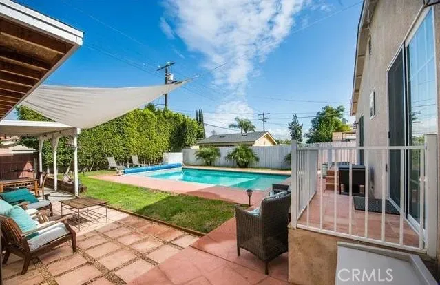 Encino Park Pool Home — Remodeled & Move-In Ready! Beautifully updated 3-bedroom, 2-bath home featuring hardwood floors, smooth ceilings, recessed lighting, crown moldings, and a spacious living room with natural light and a gas fireplace. Bright, open kitchen with large island, granite countertops, wood cabinets with under-cabinet lighting, walk-in pantry with washer/dryer hookups, and newer stainless steel appliances. Dining area off the kitchen with an open floor plan—perfect for entertaining. Large, bright primary bedroom with ample closet space and sliding glass doors to the private backyard. Secondary bedrooms offer generous closets, with one also featuring backyard access. Remodeled bathrooms with designer tile and glass shower enclosures. Private front yard with wood fencing and lush landscaping. Entertainer’s backyard with stamped concrete, grassy area, and a sparkling pool—ideal for year-round enjoyment. Includes storage area and backyard carport. A must-see—you’ll fall in love!