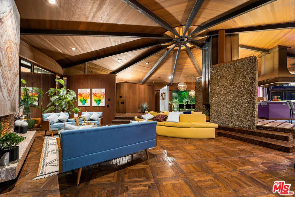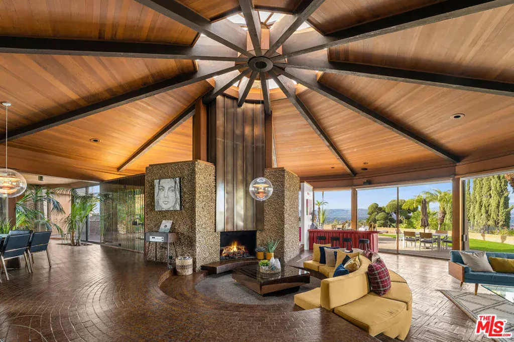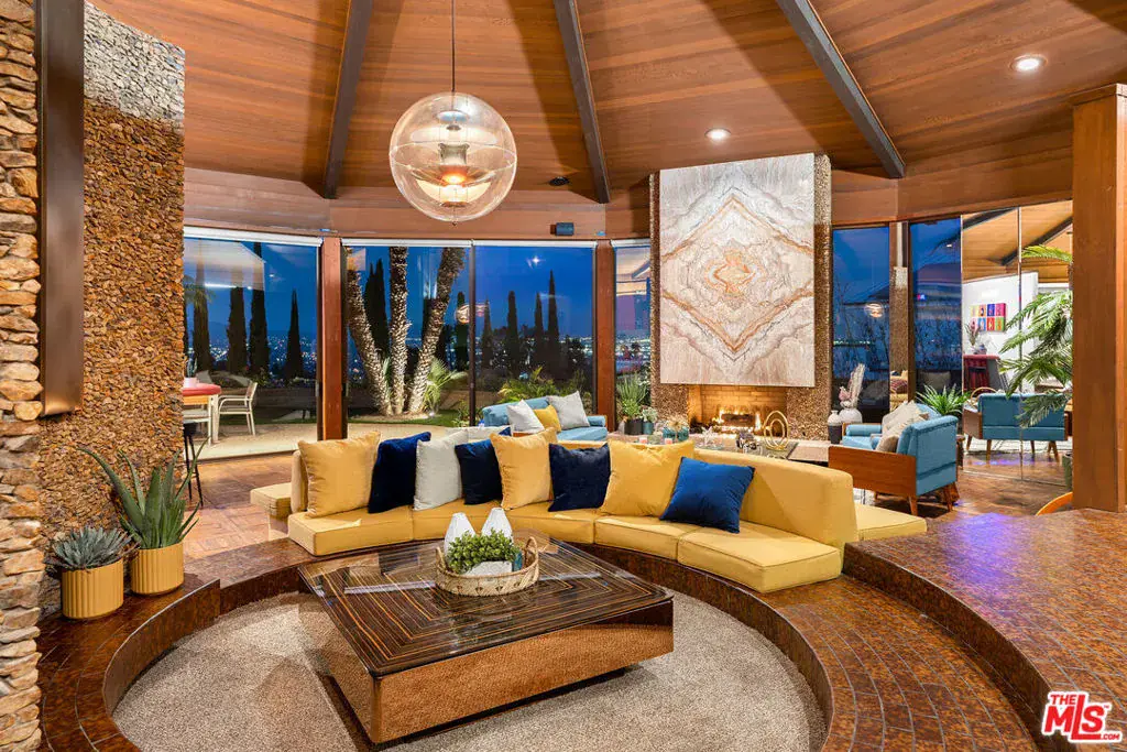 his property is available for long-term rentals. It is fully furnished, decorated, and equipped with hotel-like essentials and amenities. With our concierge team available to assist 24/7, this home rental offers a five-star hospitality experience.Nestled within the San Fernando Valley, the Lewis-Loughrey Estate stands as a testament to mid-century modernist architecture, boasting nearly 7,000 square feet of meticulously designed space. As you enter through the original bronze-clad Sunburst door, the home unfolds into three remarkable dodecagons, housing a total of seven beds and six baths. The seven bedrooms, each uniquely designed, offer breathtaking views and plush accommodations, with the main house featuring five bedrooms and the guest house offering two ensuite bedrooms. The state-of-the-art kitchen, adorned with updated appliances and ample counter space, leads to a formal dining room, seamlessly blending indoor and outdoor living. The immaculate lounge, complete with a sunken conversation pit and opulent fireplaces, provides a perfect retreat. Outdoors, balconies offer serene seating, while the luxury extends to the backyard with a private pool and hot tub, creating an unparalleled experience against the backdrop of panoramic views and manicured lawns. Experience the pinnacle of luxury living in this mid-century masterpiece.