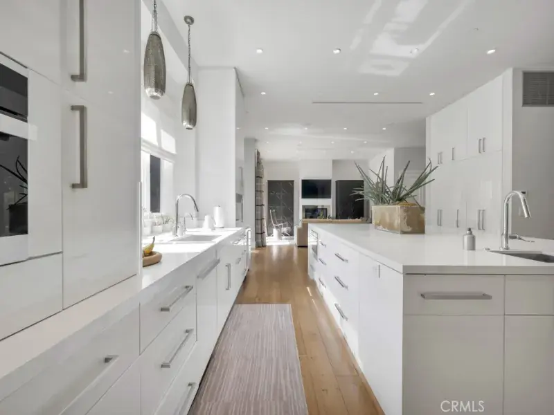 Modern designer estate nestled in a beautiful neighborhood South of the boulevard in Encino. Built on an expansive 20,000 Sqft lot and set behind stunning stainless steel gates, this home features 5 bedrooms + 6 baths and a large, brilliantly landscaped back yard full of amenities. Enter through large double doors into a bright and airy open floor plan that boasts high ceilings throughout. The stunning living room is surrounded by white walls and numerous windows that provide natural light. Rear doors open to offer the quintessential indoor/outdoor living experience. The downstairs area features a gorgeous fireplace and a separate formal dining room with table and seating for 8+ family and friends, as well as a large sitting room with vaulted ceilings. Enjoy a full gourmet kitchen; a culinary enthusiast’s dream, comes equipped with professional grade Miele appliances, custom cabinets, a massive island for food prep and seating, and a cozy breakfast area. Reminiscent of a five-star resort, the spacious backyard retreat is the perfect spot to entertain guests. Surrounded by lush landscaping, it consists of a brilliantly finished pool with a large, attached spa, poolside pergola with fire pit, summer kitchen with bar seating and covered patio. Built-in BBQ, pizza-oven, covered large outdoor dining area with table and chairs, and plenty of fruit trees. All bedrooms and bathrooms have been outfitted with top-quality finishes and fixtures, personally selected by the designer. This newly built property is an ultra-modern Smart Home and has a large movie theater on the lower level with rows of theater seating. Large, attached garage for storage and secure parking. Comprehensive security system and alarm installed for your safety. Step into luxury as you walk through the front door and experience this home’s fabulous amenities. This property gathers the best of modern design, color, texture, and quality that provides the ultimate living experience. Available immediately. Owner can fully furnish property for $26k/month. SHOWN BY APPOINTMENT ONLY.