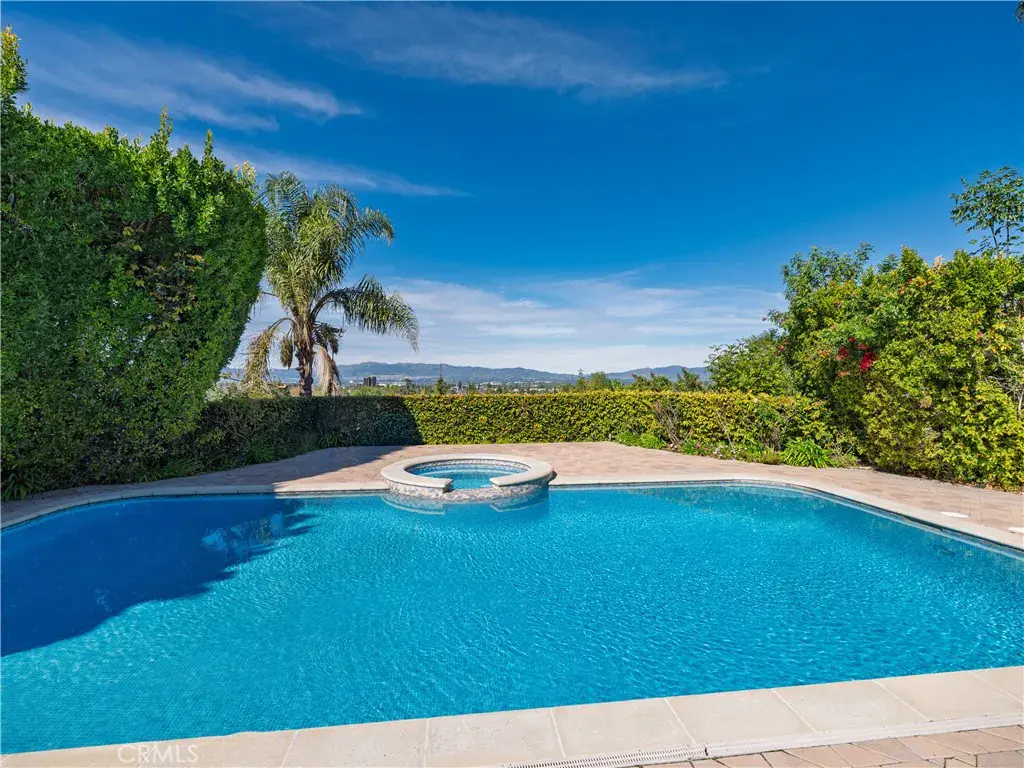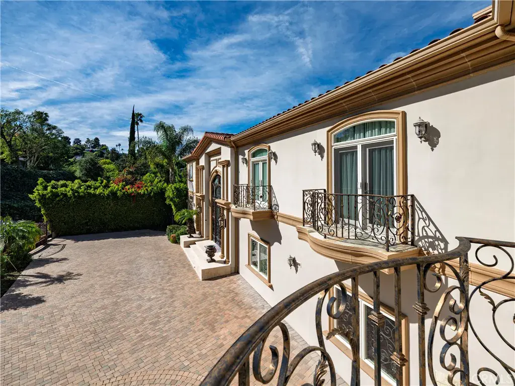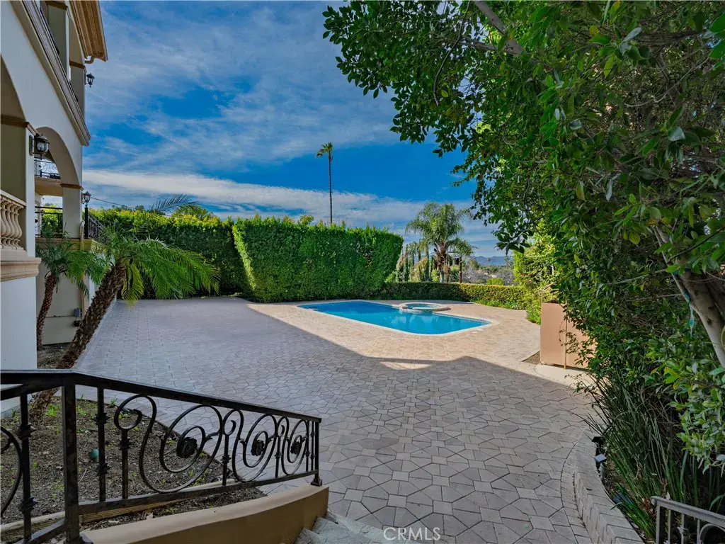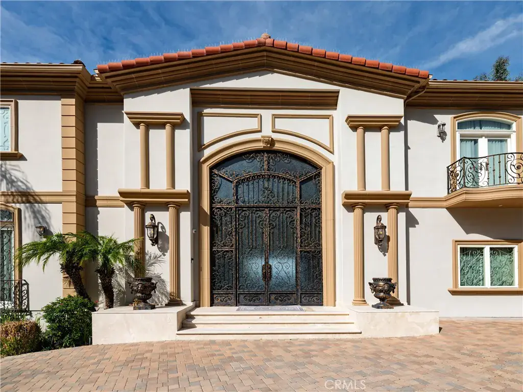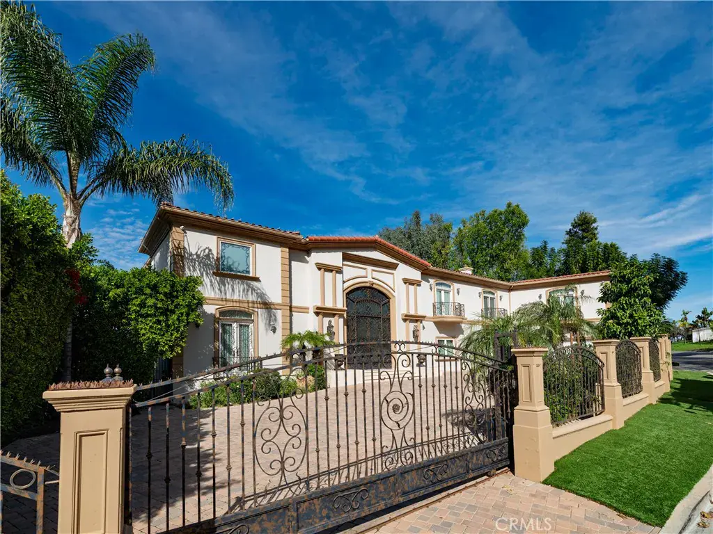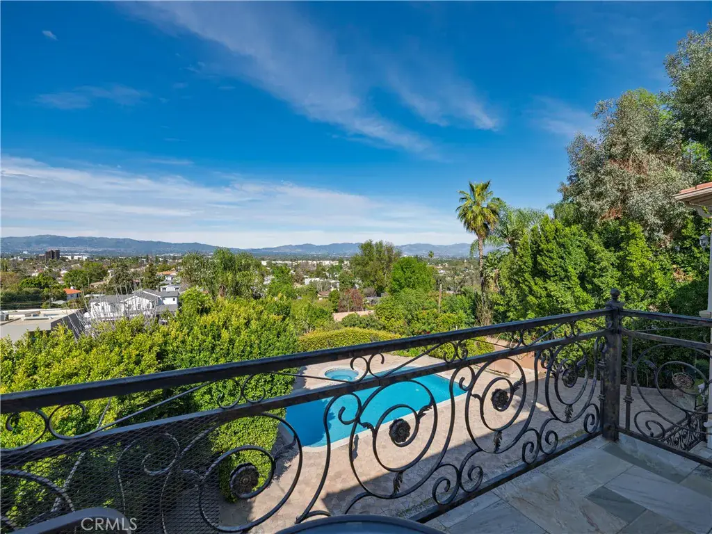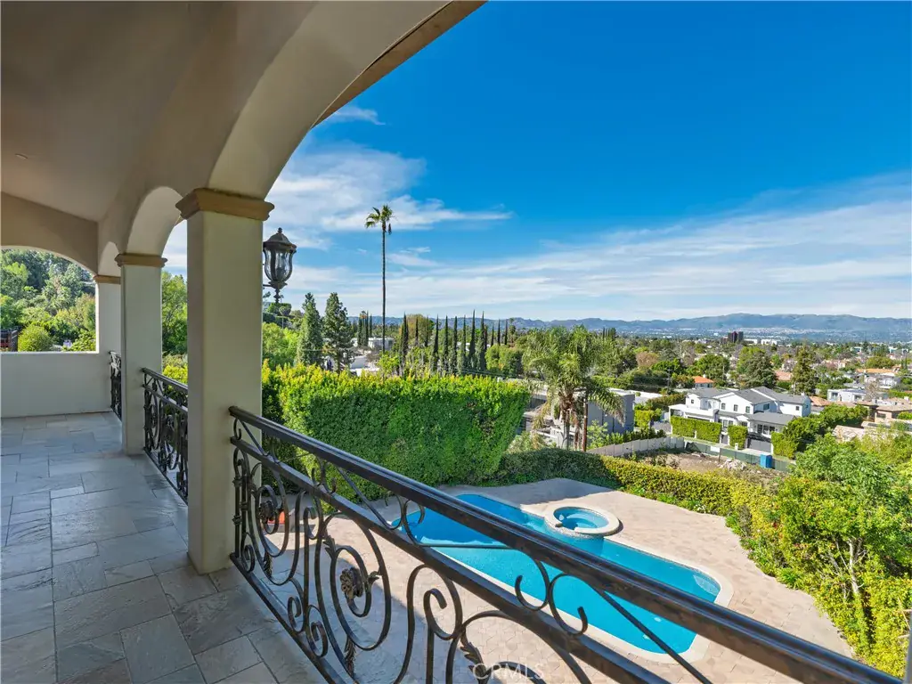 Located behind private gates in one of Encino’s most desirable South of Ventura Boulevard locations, this impressive Mediterranean estate offers exceptional privacy, grand scale living, and panoramic valley views. Built in 2009, the residence showcases timeless architecture and elegant finishes throughout. A dramatic two-story entry with custom wrought-iron double doors, soaring ceilings, and a sweeping staircase creates an unforgettable first impression. Rich hardwood floors, extensive custom millwork, and expansive windows fill the home with natural light while framing beautiful views of the surrounding hills and valley. The thoughtfully designed floor plan offers multiple formal and casual living spaces ideal for entertaining. The gourmet chef’s kitchen with custom cabinetry, stone counters, and center island opens to spacious gathering areas and flows seamlessly to the outdoor entertaining spaces. The expansive primary suite serves as a luxurious retreat, featuring a sitting area with fireplace, balcony overlooking the valley, spa-style bathroom with soaking tub and walk-in shower, and large custom walk-in closets. Additional luxury amenities include a home theater, elevator, fitness room, wet bar lounge, and beautifully appointed bathrooms throughout. Designed for indoor-outdoor living, the resort-style backyard features a sparkling pool and spa, multiple lounge areas, and covered terraces ideal for year-round entertaining while enjoying sweeping valley views. A private gated motor court with expansive paver driveway and attached three-car garage provides ample parking and privacy. Ideally located just minutes from Ventura Boulevard’s premier shopping, dining, and entertainment, this exceptional property offers the perfect blend of luxury, scale, and convenience in the heart of Encino.