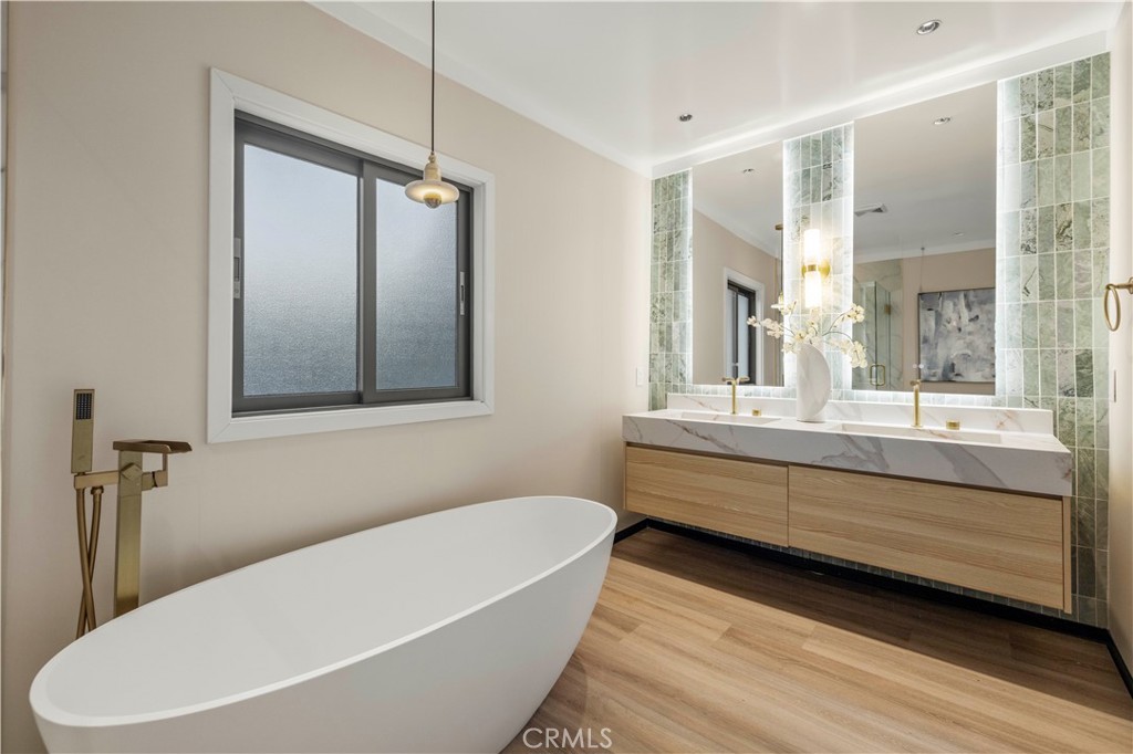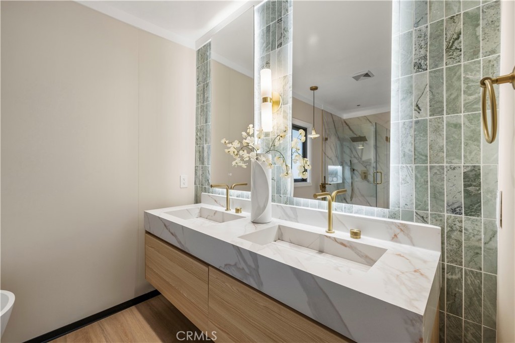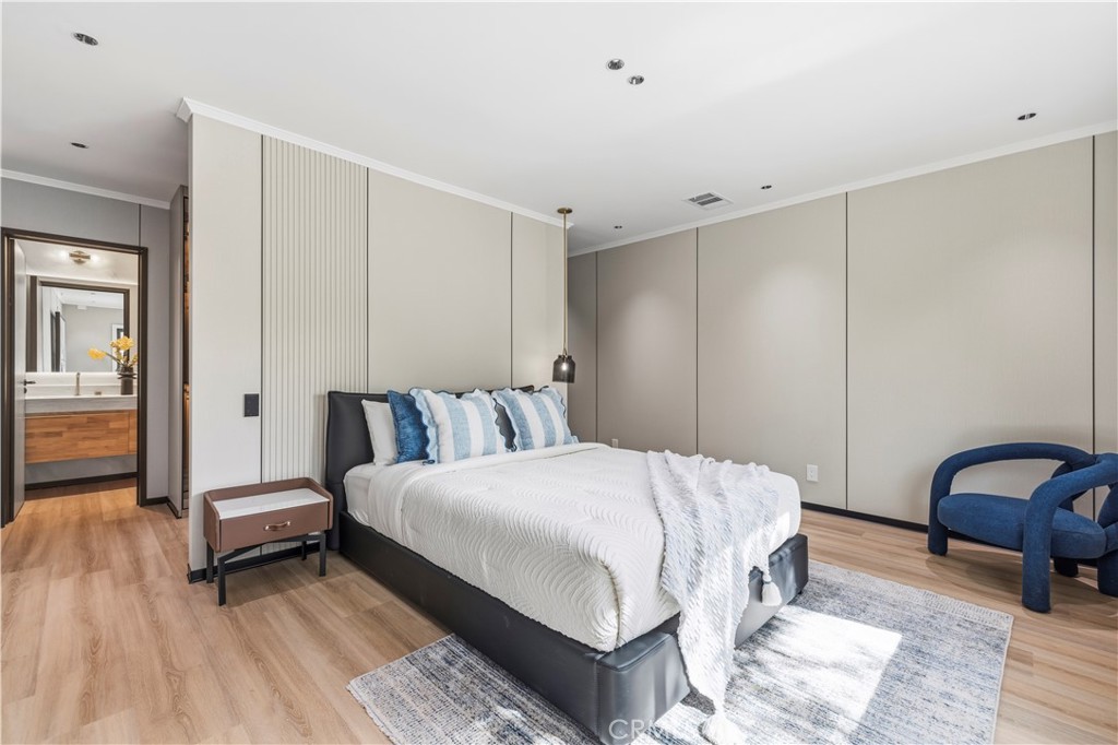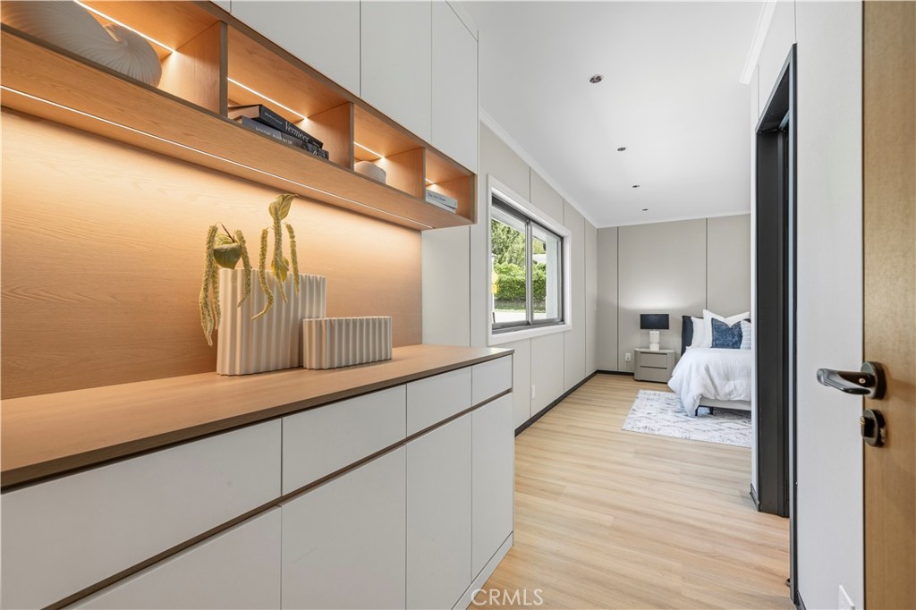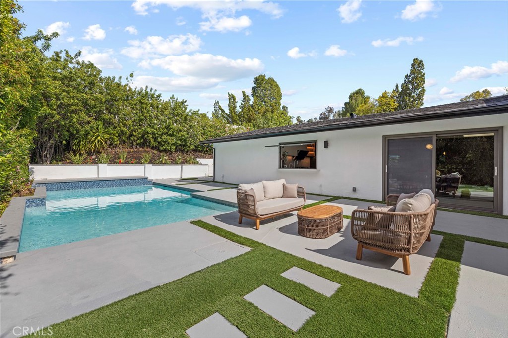 Welcome to Medley, a home that transforms the way you live, unwind, and experience everyday moments. After a long day, this is the kind of home you can’t wait to return to. With the touch of a button, you’re welcomed in—lights gently glow, music begins to play, and the home instantly feels calm, comfortable, and inviting. Whether you’re relaxing by the fireplace or stepping outside to enjoy the pool, every space is designed to help you slow down and feel at ease. South of the Boulevard in the desirable hills of Encino, this private corner lot single-story home offers 5 bedrooms and 6 bathrooms with an open floor plan designed for both everyday living and effortless entertaining. This one-of-a-kind residence blends thoughtful design, quality construction, and modern functionality—truly a home that must be seen to be fully appreciated. Inside, clean lines and well-organized spaces create a natural flow between the living, dining, and kitchen. The kitchen features a spacious island, automated spice rack, multi function sink, and counter that extends seamlessly outside creating an ideal indoor-outdoor lifestyle. The backyard is designed for gathering and relaxing, complete with a pool and multiple areas to enjoy the setting. Each bedroom offers its own private bath, creating comfort and privacy throughout, along with spacious closets and smart switches ready for the installation of electric shades. The primary suite overlooks the sparkling pool and serves as a true retreat, featuring a custom walk-in closet with built-in cabinetry and glass doors, a dual vanity, soaking tub, and shower. Thoughtful details throughout include built-in entry storage, dedicated laundry cabinetry, and dining storage with a glass wine display—each element designed to make everyday living feel simple and organized. Every inch of this home has been thoughtfully designed. Reimagined with upgraded materials and systems designed for durability and long-term performance, the home incorporates moisture-resistant, low-emission, and fire-resistant elements, along with reinforced structural components for added stability. Smart home technology is fully integrated, featuring a centralized control system, bedside touch panels, dual-control switches, video doorbell, & a full interior and exterior security camera system with remote access and real-time monitoring. A rare offering in a prime Encino location—where design, comfort, & technology come together to create a home that truly stands apart.