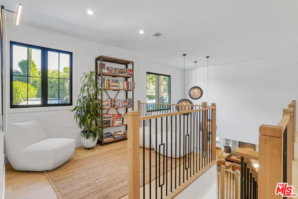 Nestled in the quiet and serene neighborhood of Encino Hills and surrounded by mature trees, this recently and completely renovated home offers stunning views and a thoughtfully designed floor plan featuring five spacious en-suite bedrooms, a powder room and library that could also function as a playroom. The expansive primary suite includes a large walk-in closet and a peaceful seating area, creating a true retreat. A beautiful wooden deck on the second floor, extending across the length of the house, provides a panoramic viewing point. The gourmet kitchen boasts high-end stainless steel appliances and custom cabinetry, complemented by abundant natural light throughout the home. Set on nearly half an acre, the property features a sparkling pool and jacuzzi both with new tile and plaster a dedicated dog run, fruit trees, and a vegetable garden. The yard is thoughtfully divided into several seating areas, perfect for relaxation and entertaining. Additional highlights include a three-car garage, integrated smart home technology for convenience and security, and a community tennis court. Elegant interior finishes evoke a relaxed yet refined atmosphere. This home is perfect for entertaining or simply relaxing and enjoying the serene surroundings.