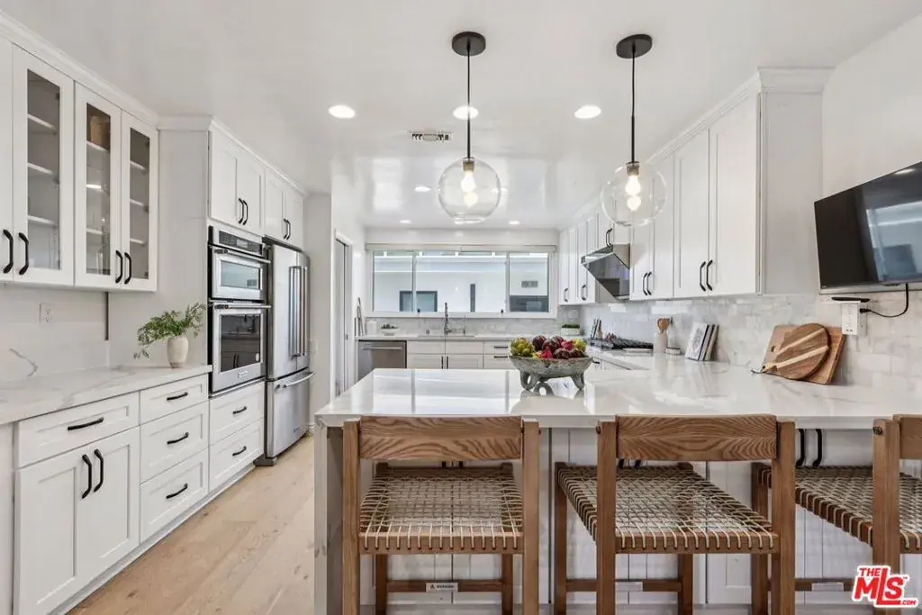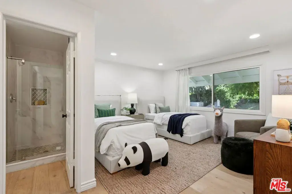 VIEWS, VIEWS, VIEWS define this stylish 1964 Mid-Century Modern Encino Hills home showcasing classic Spielman-Fond architecture and a coveted single story floor plan with 5 bedrooms, 5 bathrooms and evan a full size den. Enjoy peace of mind with a newer roof, new electrical panel, newer windows, electric car charger and ownership of a huge solar panel system. Enter through a lush private courtyard and double doors into a dramatic vaulted ceiling living room with a decorative fireplace and a wall of dual glazed sliding glass doors capturing sweeping valley and city views with abundant natural light. Designed for easy living and effortless entertaining, the home offers multiple gathering spaces, including the secluded den with its own wet bar. The light filled kitchen features updated finishes and a welcoming breakfast area, perfect for everyday mornings and casual meals.The bedroom layout offers comfort and flexibility, while the primary suite is privately positioned toward the rear with a remodeled bathroom and direct access outdoors for a true retreat feel. Step outside to enjoy the signature Encino Hills lifestyle with a sparkling pool, generous patio space for alfresco dining, and a wide, expansive backdrop. The backyard also includes an existing basketball sport court for recreation and exercise. Not only minutes to the 101 and 405 freeways, Mulholland Drive, and the Skirball Cultural Center, this home is also situated in the highly sought after Lanai Road Elementary School district, with convenient access to some of Los Angeles’ other most prestigious schools. A dream of opportunity to own an architectural Encino Hills view home with a pool, serenity, timeless Mid-Century design surrounded by highly regarded educational facilities.
