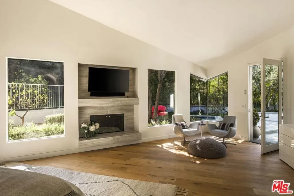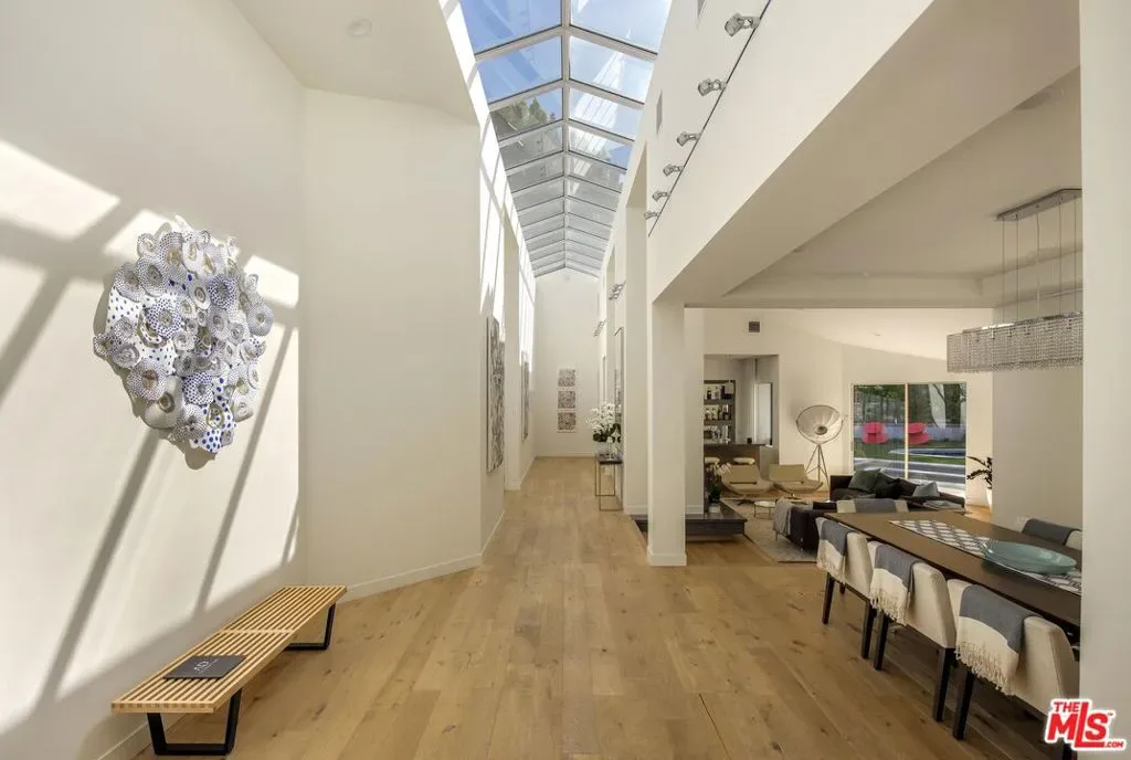 Welcome to 3833 Hayvenhurst Drive, a two-story masterpiece nestled within the prestigious guard-gated community of Royal Oaks Colony. This stunning smart home offers 5BD/6BA and features two expansive primary suites, multiple living spaces with seamless outdoor access, a private home theater, and a resort-style backyard designed for both entertaining and relaxation. Inside, engineered oak floors, soaring vaulted ceilings, and curated custom finishes create a warm yet sophisticated ambiance. Just off the entry, the formal living room showcases a sleek fireplace, full bar with sink and beverage fridge and sliding glass doors that open effortlessly to the outdoors, an ideal setting for hosting. This space opens to the adjacent formal dining room and is complemented by a stylish powder bath, perfect for guests. Past the hallway with striking pyramidal skylight ceilings, the bright chef’s kitchen is equipped with Viking appliances, a walk-in pantry, double dishwasher, microwave and warming drawer, quartz countertops, and a center island with a secondary sink. The kitchen flows into an inviting family room featuring a gas fireplace, breakfast nook, built-in office space, and direct access to the backyard. The main-level primary suite is a true retreat, filled with natural light and highlighted by a beautiful fireplace, dual walk-in closets, and direct outdoor access. The luxurious en-suite bath includes dual vanities, a soaking tub, a spacious step-in shower with bench, and a private water closet with bidet. This level also includes a home theater, a serene front patio with firepit, a dedicated laundry room, and an additional en-suite bedroom. Upstairs, three more en-suite bedrooms await, including a second sunlit primary suite complete with a walk-in closet and a spa-inspired bath featuring a soaking tub, dual vanities with extensive counter space, and an oversized shower with bench. The lush backyard feels like a private resort, offering a heated pool with a striking fountain wall, spa, outdoor kitchen, and multiple lounge areas to soak up the California sun. Additionally the home has a three-car garage with abundant storage, Control4 smart home automation, integrated indoor and outdoor speaker system, and an upgraded ADT security system with motion detectors, glass break sensors, and several perimeter cameras. Located within the award-winning Lanai Road school district, this is a rare opportunity to own an exceptional estate in one of the area’s most sought-after gated communities.