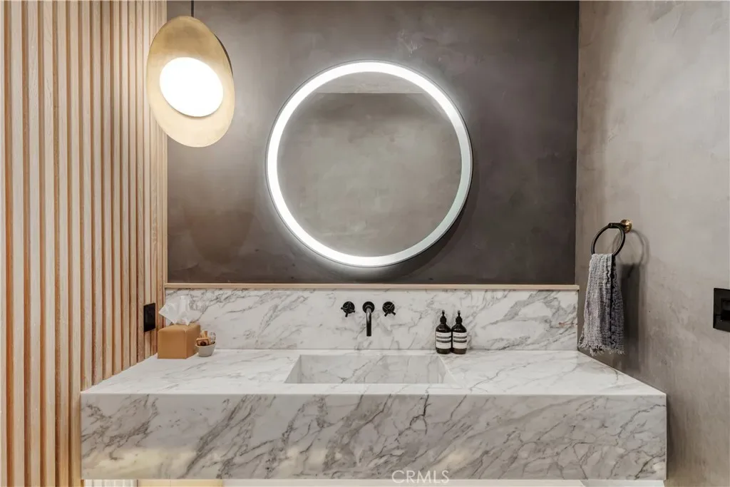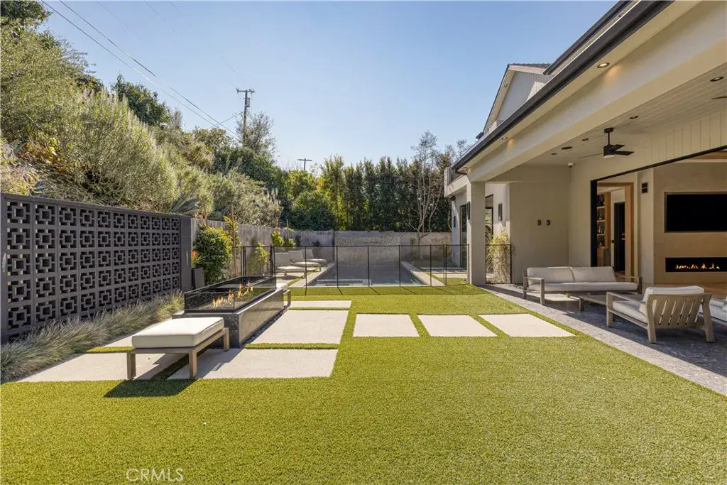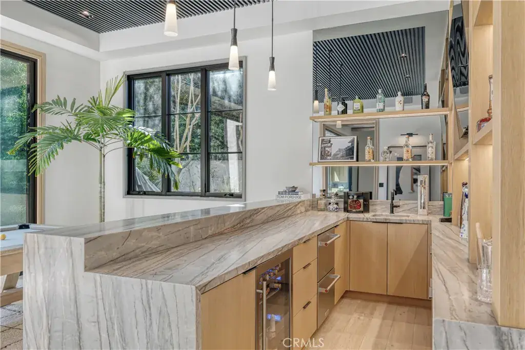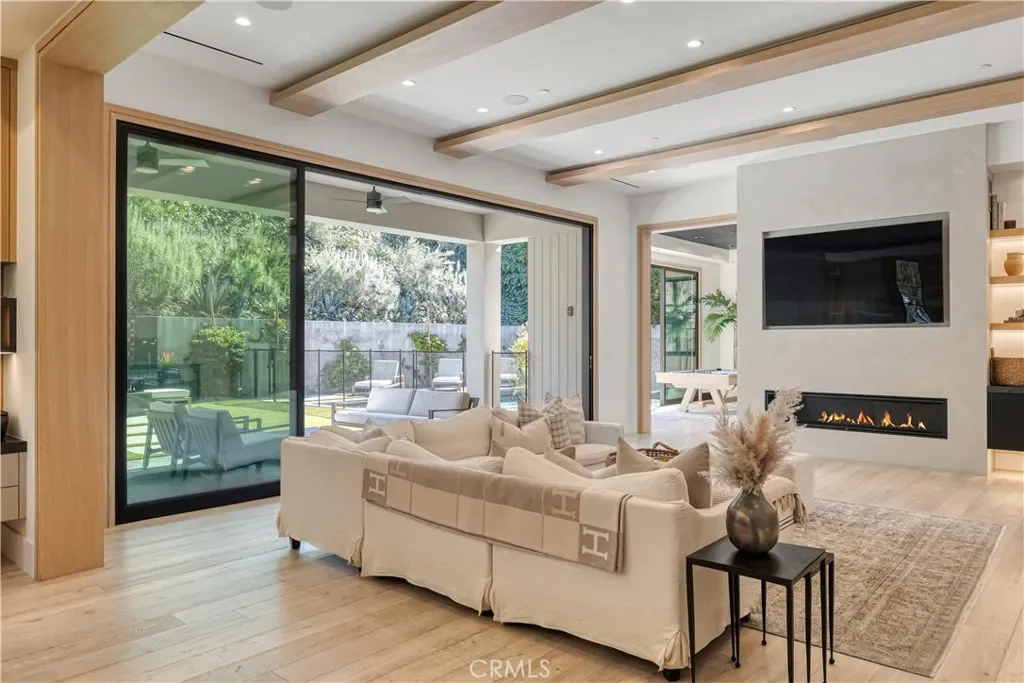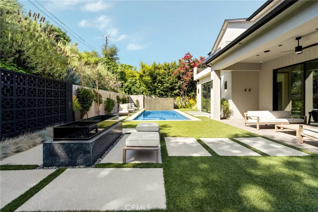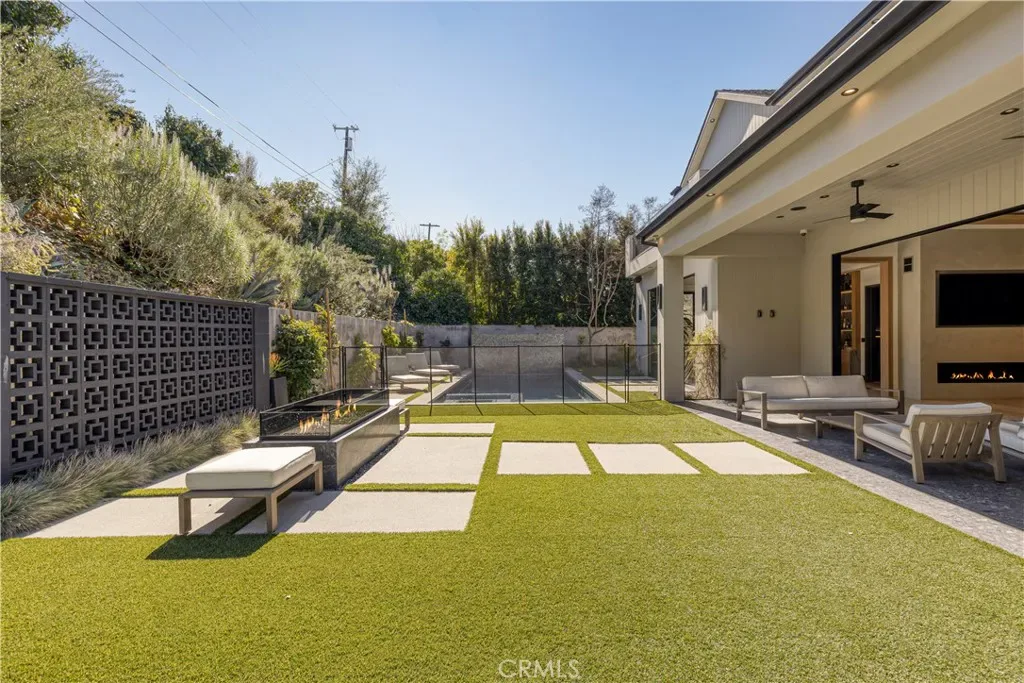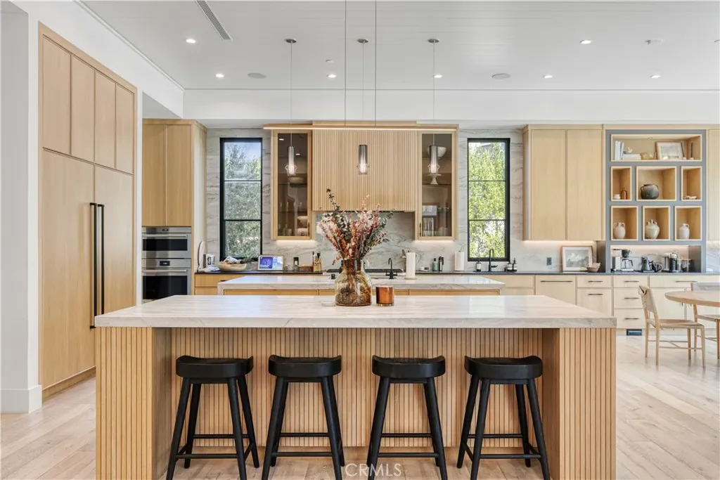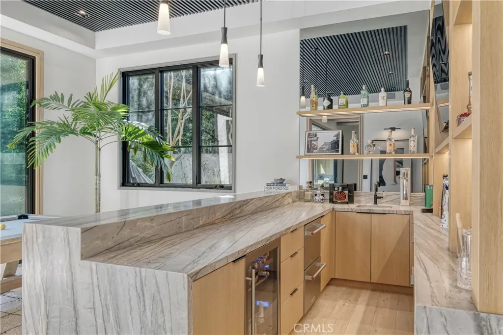 Welcome to this exquisite 5 bedroom, 7 bathroom estate, where modern luxury meets effortless sophistication. Nestled in prime Encino Hills on a tranquil cul-de-sac, this home is zoned for the highly sought after Lanai Elementary School. Thoughtfully designed with a timeless aesthetic, it features Venetian plaster, warm wood floors, custom finishes, and an open layout with soaring ceilings that enhance the sense of space and grandeur. The seamless indoor-outdoor flow leads to beautifully landscaped grounds, complete with a fire pit, BBQ island, and a sparkling saltwater pool and spa with a waterfall—an entertainer’s dream. The primary suite is a true sanctuary, offering a private fireplace, an oversized balcony, and a custom walk-in closet with an island. The spa like bathroom is designed for relaxation, featuring a soaking tub, dual sinks, and an enclosed glass steam shower. Each secondary bedroom is ensuite, boasting soaring pitched ceilings and elegant finishes. Designed for both luxury and convenience, this home includes a state-of-the-art movie theater, a stylish bar and game room overlooking the pool, and two laundry rooms. The chef’s kitchen is fully equipped with top-tier stainless steel appliances, a Wolf gas range, Sub-Zero refrigerator and freezer, double ovens, double islands, a walk-in pantry with an extra refrigerator, and a butler’s pantry. The formal dining room is a showstopper, adorned with designer wallpaper ceilings and complemented by a temperature-controlled wine cellar. Additional features include a Control4 Smart System, designer light fixtures, custom carpentry, and tankless water heaters. This exceptional property must be seen in person to fully appreciate its high-end details. Can also be sold furnished for a turnkey luxury experience.
