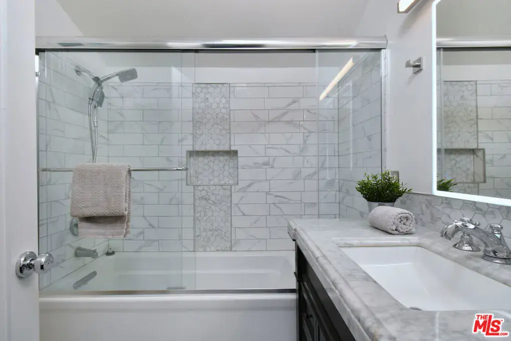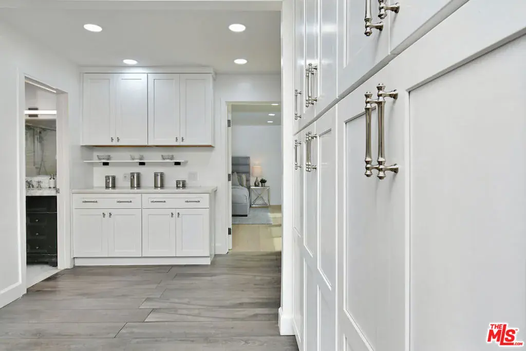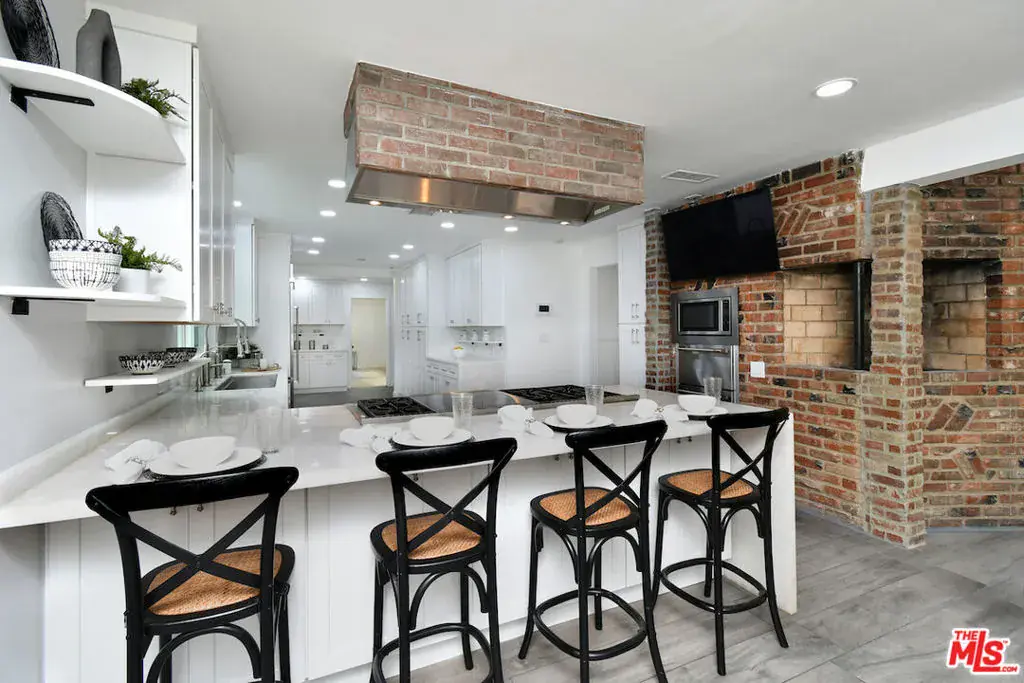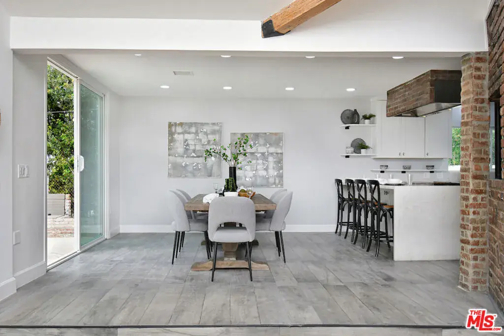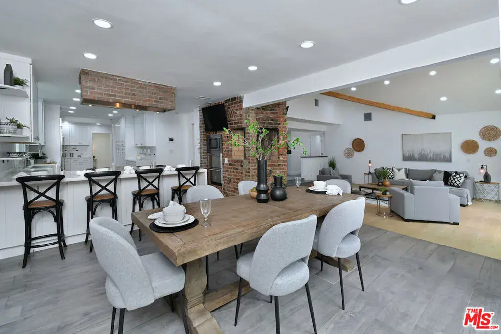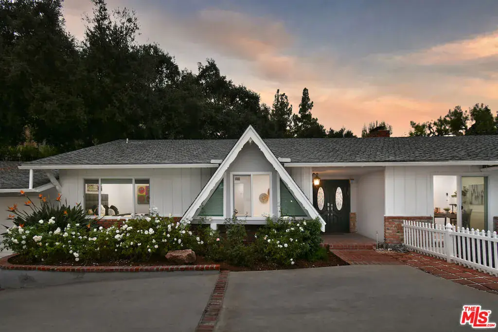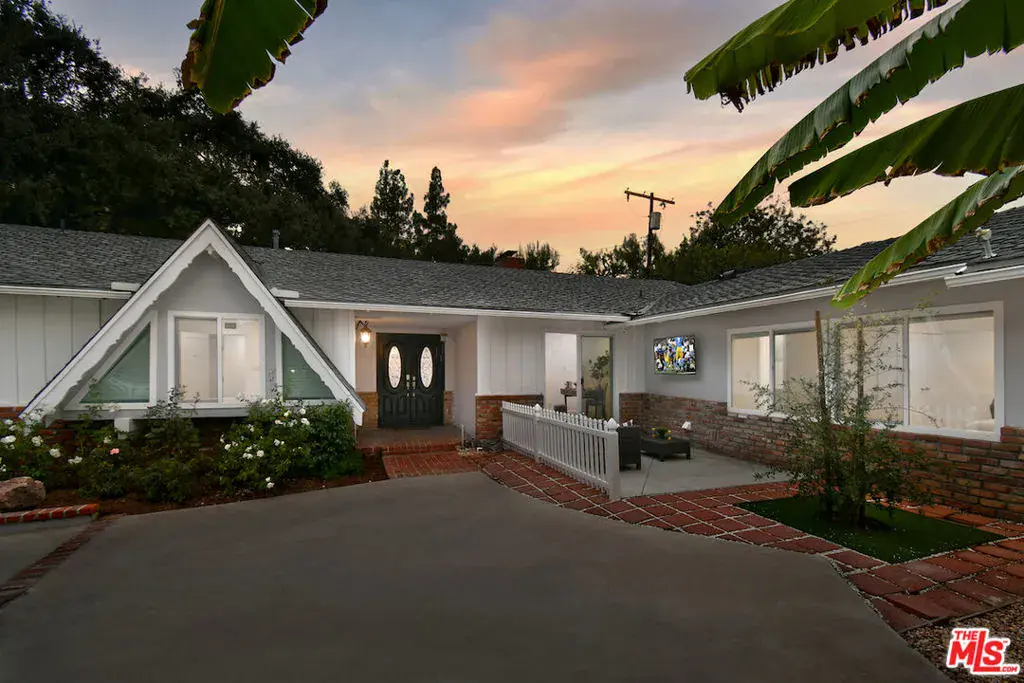 Tucked behind gates on a quiet 6-home cul-de-sac in the Encino foothills, this stunning single-level ranch channels the timeless charm of Jeanne Vandruff’s iconic “Cinderella” homes full of character, with modern contemporary finishes. Step through the formal entry into a breathtaking step-down living room with dramatic beamed ceilings, clerestory windows, and wide-plank wood floors that fill the space with light and air. A massive used-brick fireplace anchors the room complete with an 85″ LG TV for cozy movie nights. Off the entry, a dedicated office opens to a peaceful front patio the perfect spot for morning coffee or a quick work call in the sun. The remodeled chef’s kitchen is a showstopper with quartz counters, shaker cabinetry, a double 6-burner Wolf range with griddle, a breakfast bar, and two refrigerator drawers all overlooking the backyard and flowing seamlessly into the formal dining room for easy entertaining. Need flexibility? A private guest suite just off the kitchen offers a spacious bedroom, full bath, and generous closet space ideal for extended family, guests, or an amazing kids’ playroom. Down the main hall, you’ll find three additional bedrooms and a stylish shared bath. The primary retreat is a true sanctuary with backyard and hillside views, a cedar-lined walk-in closet, and a luxurious spa-style bath featuring a steam shower, dual-sink vanity, and jetted tub with direct access to the pool. Step outside to your own private paradise a beautifully landscaped backyard with a pebble-sheen pool and Baja shelf, built-in brick bench seating, putting green, and multiple lounging and dining areas perfect for gatherings under the stars. With an attached two-car garage, gated parking for multiple vehicles, and an unbeatable location near Lanai Road Elementary, Encino Little League, Balboa Rec Center, and all the best shops and restaurants this home truly has it all. 4053 Harclare Lane a private, sunshine-filled escape that blends classic California charm with modern comfort. Come see why everyone’s talking about it!