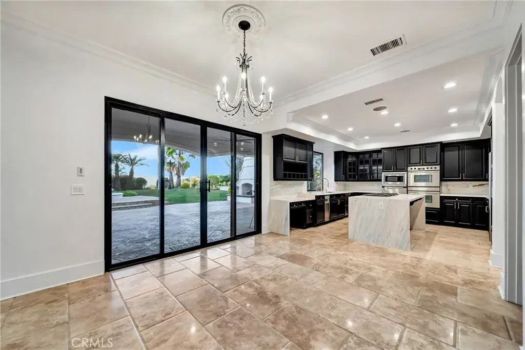 This opulent estate is set on over 1.25 acres, behind its own private gate within an exclusive 4 estate gated community. Perched high above El Caballero Country Club, the property offers endless views of the city lights and golf course. Nearly 5,500 sq ft of luxuriously appointed, recently remodeled living space welcomes you as you pass through the double wrought iron and glass doors into the grand foyer. Entertain guests in the 2-story, formal living room with fireplace or host parties in the spacious dining room. The chef’s kitchen features stainless steel appliances, breakfast area and center island and is ideally located to take full advantage of the yard while offering access to the large family room and bar. Maid’s quarters and an office round off the first floor. The master bedroom retreat rivals the most luxurious resorts in style, size and view and is accentuated by a large patio overlooking the manicured grounds and the entire SF Valley while the master bathroom features spa-like amenities. Three other upstairs bedrooms are all generously sized. The resort-like backyard offers multiple sitting areas, lush landscaping, an oversized covered patio, built-in BBQ, outdoor fireplace with a pizza oven and a lagoon shaped pool with spa. The home has a full home automation system which controls home audio, lighting and climate systems in addition to the full security surveillance. *House can be rented furnished at a premium*