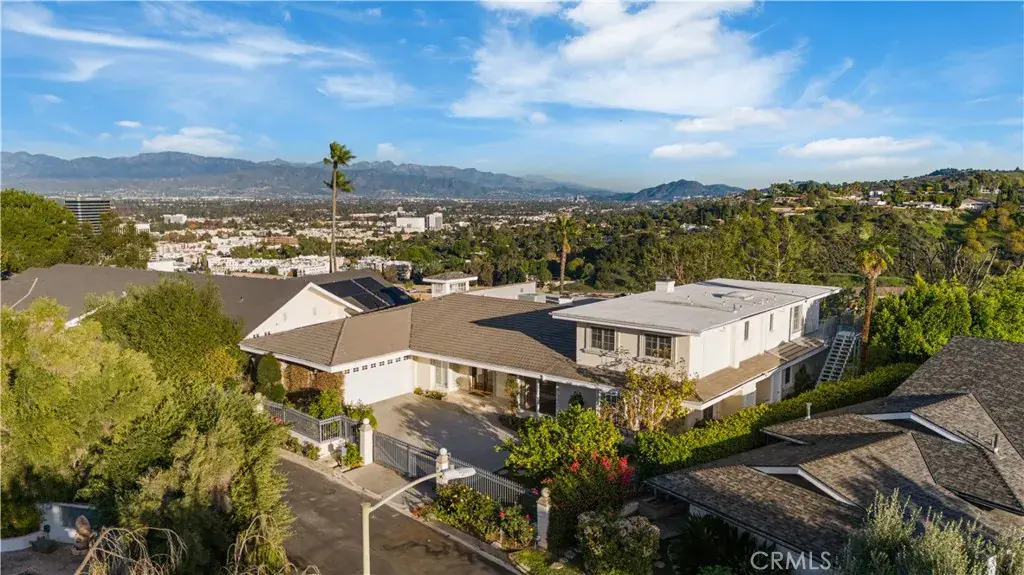 Tucked away at the end of a quiet cul-de-sac in the prestigious Royal Oaks of Encino, this gated residence offers privacy, elegance, and breathtaking panoramic views of the city and surrounding hills. Spanning approximately 4,942 square feet, the home features 6 bedrooms and 6 bathrooms, thoughtfully designed for both comfortable everyday living and effortless entertaining. Upon entry, expansive living and family rooms are bathed in natural light, each framed by endless views that create a seamless connection between indoors and out. A formal dining room sets the stage for memorable family gatherings and holiday celebrations. At the heart of the home is a cook’s kitchen, complete with a large center island and a casual nook area—ideal for morning coffee or informal meals while enjoying the scenery. The primary suite is a true retreat, offering generous proportions, a private balcony, and sweeping panoramic views—perfect for unwinding at sunrise or sunset. The home’s flexible layout includes four bedrooms on the first floor, two of which are en-suite, while the additional rooms can easily serve as a maid’s quarters, guest room, or home office. An additional en-suite bedroom on the second floor provides privacy for guests or extended family. Step outside to a resort-style backyard, where a pool, seating areas, and dramatic hill and city views create the ultimate backdrop for entertaining or simply relaxing as the sun sets over the skyline. Ideally located within the coveted Lanai Elementary School district, the property offers easy access to the Westside, Ventura Boulevard, and major freeways—combining tranquility with everyday convenience. (Some images have been virtually staged for illustrative purposes only.)