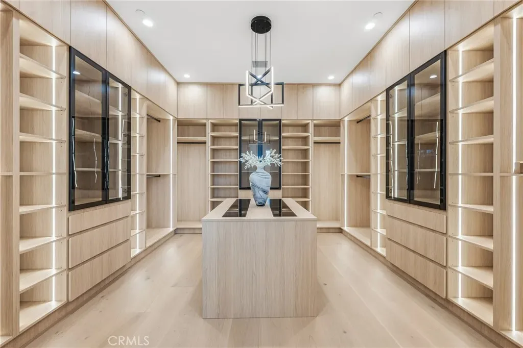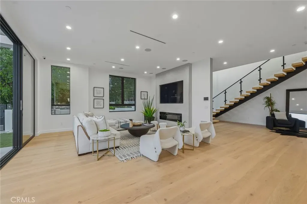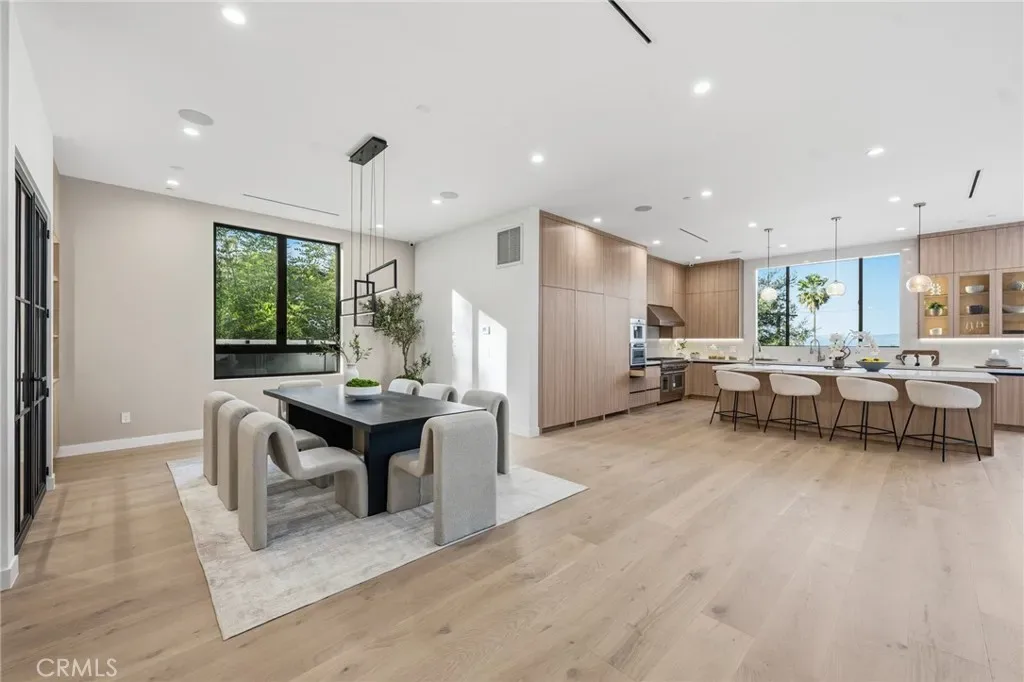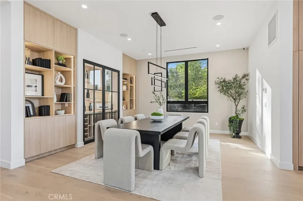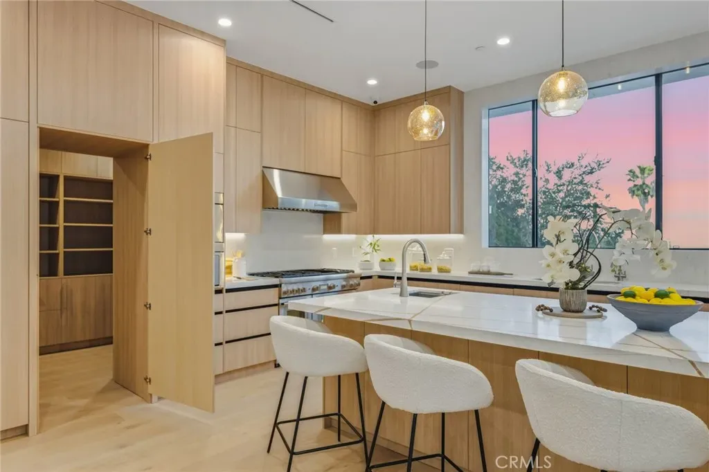 Ultra-private gated Encino compound offering rare seclusion, security, and refined design on an expansive over 18,500 Sqft lot. Fully enclosed with security fencing and mature landscaping, the property delivers complete privacy from every direction while capturing tranquil valley and green nature views. From the moment you enter through the gates, the residence feels intentionally removed from the outside world quiet, serene, and thoughtfully composed. Designed by one of Los Angeles’ most respected interior designers, the approx. 5,717 Sqft home showcases soaring ceilings, abundant natural light, and an open-concept layout that balances architectural presence with warmth and livability. High-end finishes, custom carpentry, and curated materials define every space, creating a cohesive aesthetic that feels luxurious yet inviting. The floor plan offers five generously sized bedroom suites, a private office ideal for focused work, a dedicated theater, and an oversized walk-in pantry designed for daily ease and entertaining. The primary suite serves as a private retreat with spa-inspired bath, expansive steam shower, and serene outlooks framed by lush greenery. Outdoor living is designed as a true extension of the home, featuring a resort-style pool and spa with sweeping views and total privacy, fire pit, and a fully equipped outdoor kitchen with BBQ, pizza oven, cooktop, refrigerator, and temperature-controlled beverage cooler. An additional approx. 300 SF outdoor gym and storage/doghouse add versatility. Smart home technology enhances comfort, security, and efficiency throughout. A large three-car garage and gated driveway provide ample secure parking. A rare Encino offering that prioritizes privacy, design, and lifestyle where luxury feels intentional and value is found in what cannot be replicated.