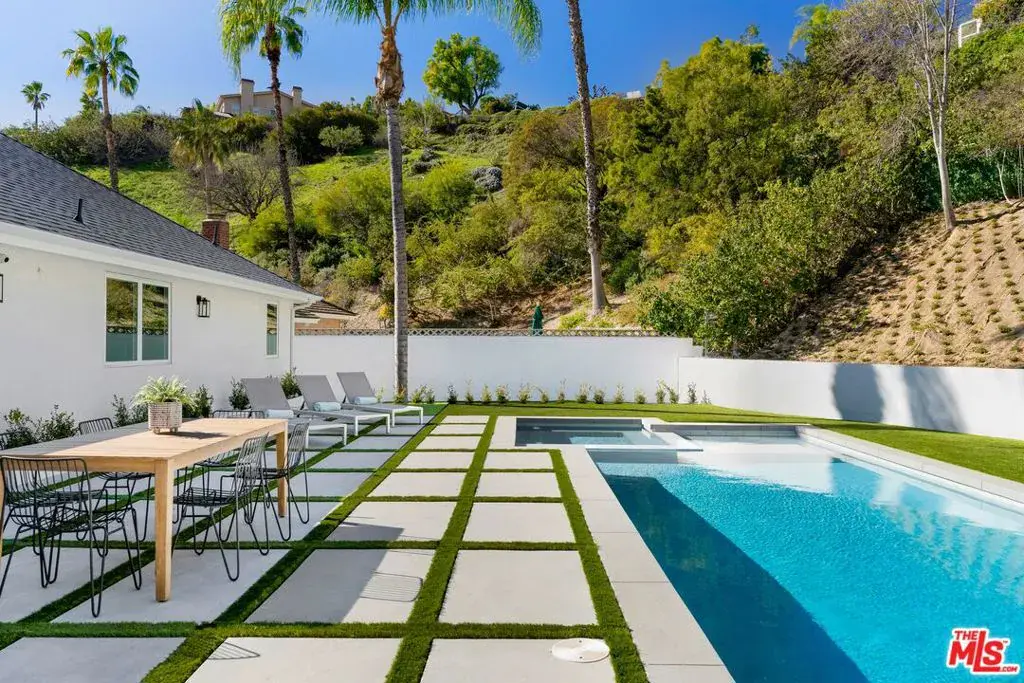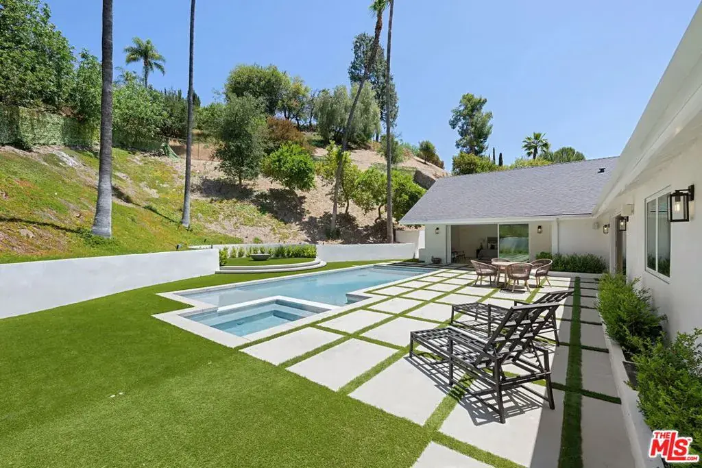 FULLY FURNISHED OR NOT! A rare opportunity to lease a brand new fully remodeled modern interior charmer redone from head to toe, with the finest finishes, situated in the hills of Encino, In a secluded street at the end of a quiet cul de sac. LA living at its finest! This incredible, 4 Bed, 5 bath 3,500 sq ft upscale remodeled, single-story offers architectural elements and designer details with an open concept floor plan which is enhanced by phenomenal indoor/outdoor flow with floor-to-ceiling sliding glass walls. Infused with natural light throughout, a step down living room with a marble accent fireplace, adjacent designated dining room with picturesque view of your own private landscaped hillside, refreshing pool, outdoor circular firepit sitting area and an entertainer’s outdoor patio. A gourmet open spacious kitchen fully equipped with latest top of the line designer appliances and a large island used for a breakfast area or for entertaining. Custom cabinetry, quartz countertops, flush cooktop with a rising sleek hood & ample counter space. The vast master quarters has ample natural light from its glass sliders which showcase the relaxing exterior private grounds featuring the patio area, pool & spa. Ample closet space in the dual walk-in closets, dual vanities in the master bathroom and an oversized marble shower. The secondary bedrooms are all spacious as well with built in custom closets. Truly an entertainer’s paradise, all located in the prestigious sought after Lanai Elementary school neighborhood. Additional amenities include mudroom, Large Laundry room, recessed lighting, wood laminate flooring, Lutron home system, central air & heat, and an epoxy floor garage. Home can be fully furnished or unfurnished.