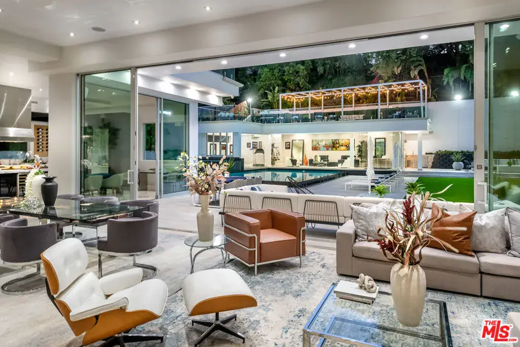 Privately gated and architecturally striking, this contemporary Encino masterpiece is thoughtfully designed for elevated living and effortless entertaining. Expansive walls of floor-to-ceiling glass blur the line between indoors and out, opening to multiple rooftop and deck spaces, a resort-style pool and spa, and a fully equipped pool house creating a seamless indoor-outdoor lifestyle of the highest caliber. The dramatic great room flows directly into a chef’s kitchen featuring Calacatta Gold marble countertops, Viking appliances, and sleek stainless-steel finishes. Additional highlights include a dedicated home theater with 4K projection and premium surround sound. Upstairs, six generously sized ensuite bedrooms offer privacy and comfort, including a secluded primary retreat with an expansive balcony, walk-in closet, private office, and a spa-inspired bath complete with an infinity soaking tub, dual vanities, and steam shower. This privately gated SMART home is outfitted with integrated Sonos audio, LED lighting, expert landscaping, a striking vertical garden, and a three-car garage. A bold expression of modern luxury, this residence is a true statement home in one of Encino’s most desirable settings.