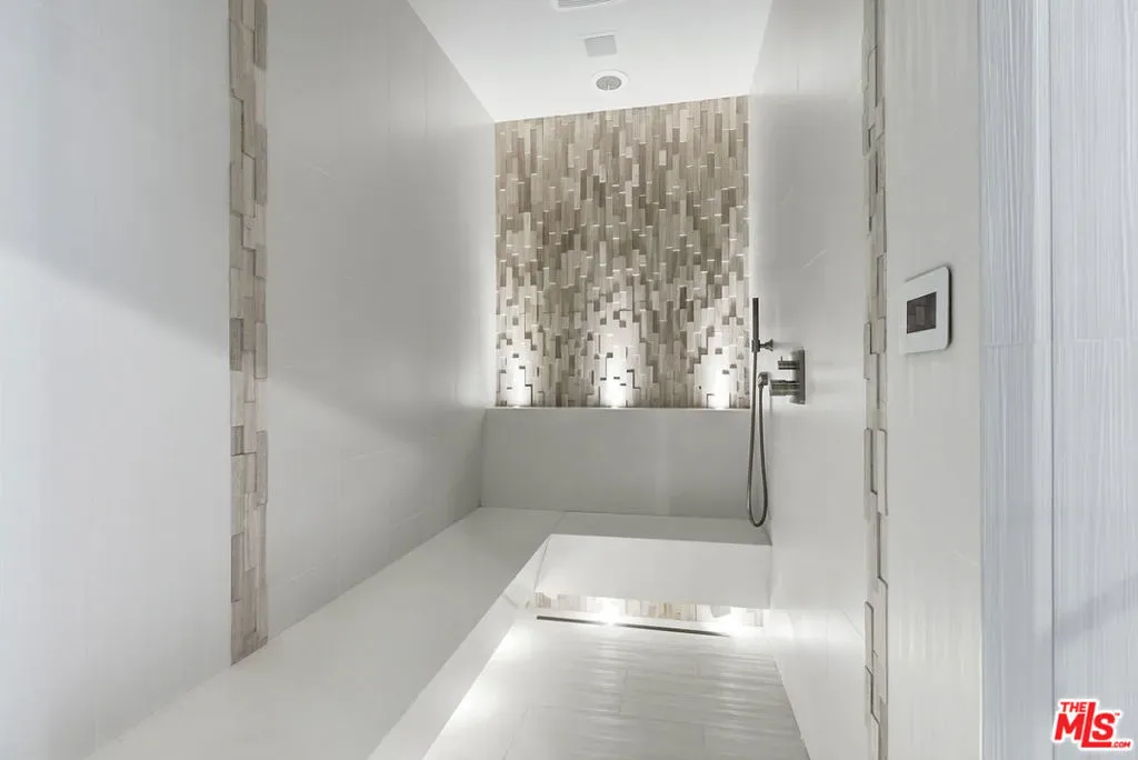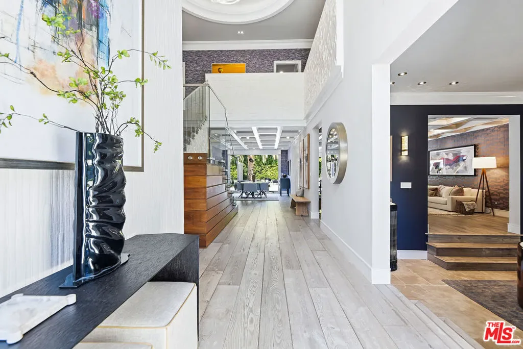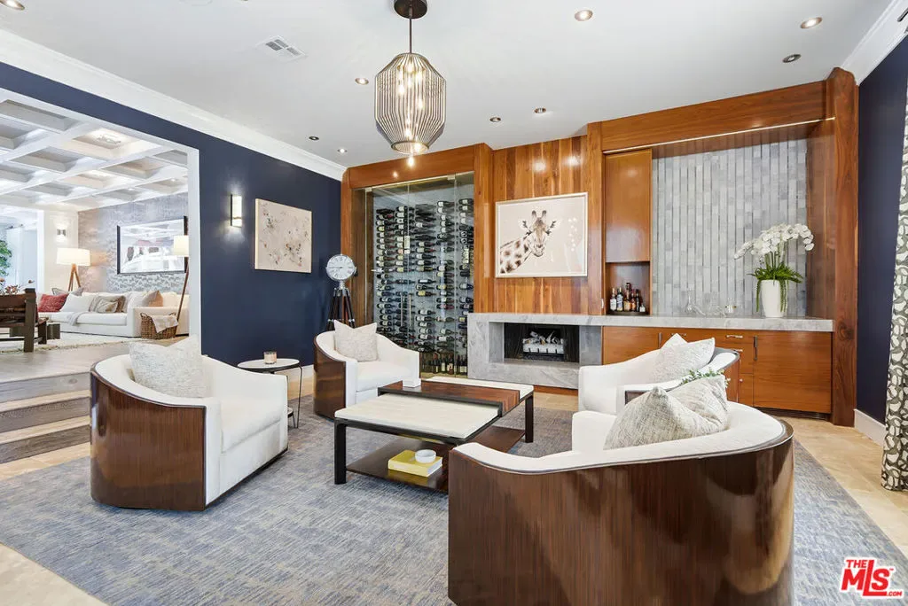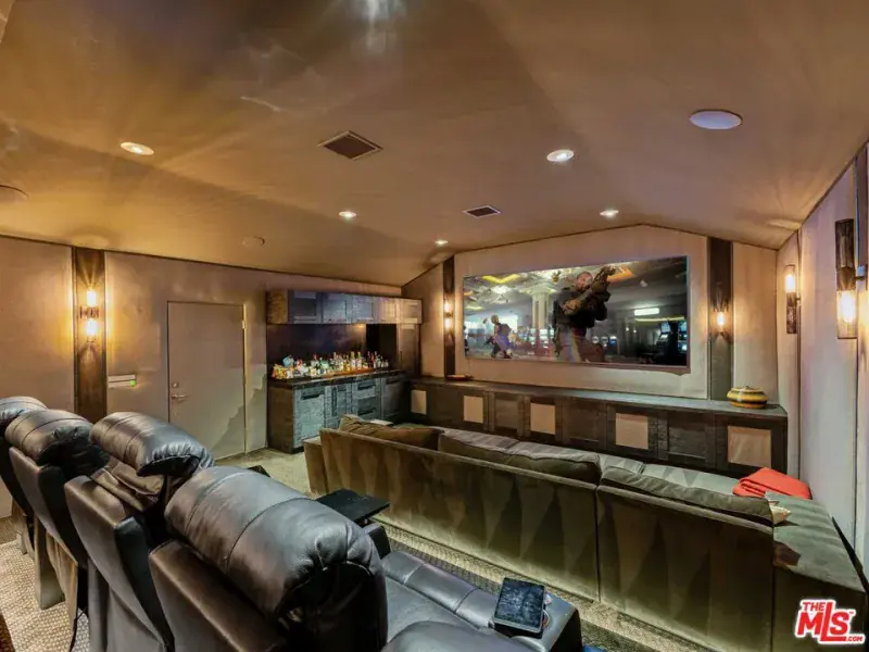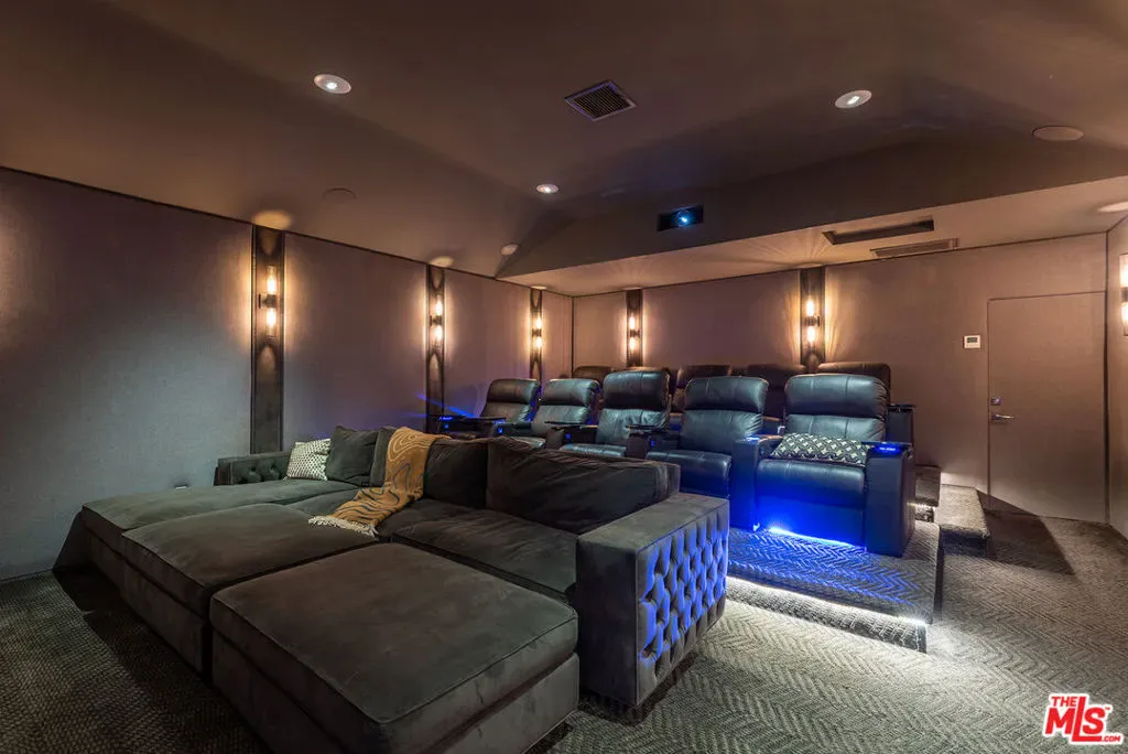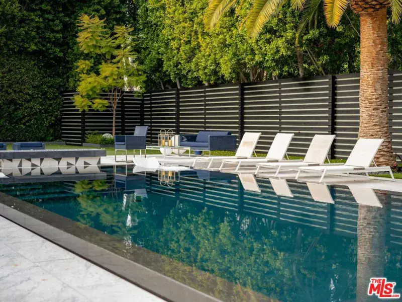 Supremely private Stately gates with imposing 25′ high hedges hide a true miracle of a home that serves as the ideal host for fantastic entertainment. State of the art Movie theater. State of the art Golf Simulator with cigar lounge that has humidifier filtration for fresh clean air. Bold designer choices abound – gorgeous on-trend fixtures and dynamic wallpaper coverings. Two downstairs en suite bedrooms, two other upstairs en suite large bedrooms. Another bedroom converted into a complete spa with wet and dry sauna and massage table. The other bedroom adjacent to the Primary suite has been opened to serve as a huge killer office. Upstairs laundry has been added to complement the downstairs laundry off the secondary staircase. This is truly a luxurious floorplan. La Cantina folding doors open to reveal an immaculate backyard that blows you away. Placid infinity pool reflects the subtle exterior lighting with various daybeds and conversation lounges surrounding cozy fire pits. The outdoor kitchen offers a veritable restaurant experience with the pizza oven, fireplace, TV and bar.
