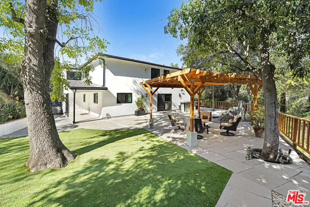 Experience the ultimate “Tree House” sanctuary in this masterfully reimagined home, situated on a sprawling 20,000+ square foot flag lot just a half-mile south of Ventura Boulevard. This 4-bedroom, 3-bathroom residence offers over 3,100 square feet of modern luxury and has undergone a complete top-to-bottom renovation, including a brand-new roof, windows, doors, electrical, plumbing, and dual-zone, app-controlled HVAC systems for precise climate control on every floor. The open-concept interior is anchored by a gourmet chef’s kitchen featuring a professional Thermador appliance suite, stunning Taj Mahal Quartzite countertops, and a versatile island and peninsula layout. Designer engineered hardwood floors flow throughout the home, leading to a massive primary suite that serves as a multi-functional family retreat. The primary suite includes a dedicated sitting room perfect for a nursery or executive office, an extended exercise room for private wellness, and two separate, oversized walk-in closets. Every detail has been meticulously curated to provide a turn-key experience for those seeking brand-new construction quality within a secure, secluded environment. The exterior grounds are truly unparalleled, offering a private forest-like atmosphere characterized by mature trees and a tranquil, rhythmic waterfall. The elevated nature of the lot creates a unique “Tree House” perspective, complemented by an expansive outdoor dining deck off the living room that features professional tree lighting throughout the canopy and over the waterfall area. Entertainment and relaxation are seamless with a custom outdoor BBQ station, a beautiful gazebo, and multiple elevated paved platforms equipped with electrical and water supplies, ideal for a secondary workout space or quiet meditation. For the modern commuter, the property includes a completely renovated 3-car garage with a 220V outlet ready for your EV charger, custom storage shelving, and remote-controlled security doors for added peace of mind. A brand-new concrete driveway and an extra-large paved front yard provide ample space for guest parking. This flag-lot estate offers the rare combination of immediate access to the boutiques and dining of the city with the total privacy and security of a hidden mountain retreat.