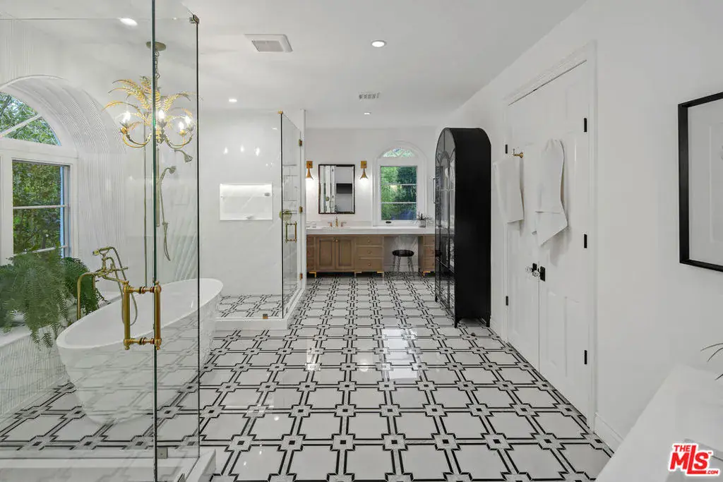 Behold the vision of this Parisian transformation that marries traditional, contemporary and art deco elements with understated elegance and sublime sophistication. Perched high up off the street, behind a secure imposing gate, sits this utterly private view estate. Voluminous light from all rooms and exhilarating views of the Valley make this home airy and bright, giving that coveted expansive indoor/outdoor feel. An unforgettable primary suite. A main level gym and a bar where everyone will gather. The kitchen’s huge center island is the heartbeat of the home, feeding into the great family room and exquisite dining room with more spectacular views. The beautiful breakfast nook, the huge family room with folding accordion doors revealing the stunning backyard oasis. A rear yard “palapa” hut is perfect for reflective moments, or just enjoying a cigar. The massive 1.2 acre lot offers ample covered parking and a huge motor court. The way you want to live.