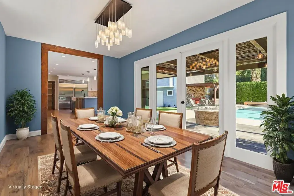 Discover the perfect balance of history, luxury, and modern family comfort in this truly exceptional unfurnished, 5BD / 5BA, 3,216 sq ft residence with beautiful vacant 1BD/1BA ADU (incl. kitchentte, full bathroom & washer/dryer – LEASE PRICE INCLUDES ADU) on a sprawling 14,000 sqft. lot. Originally the John Haskell Farmhouse, the property has been thoughtfully transformed with a Modern Farmhouse Chic aesthetic, creating a secure, private compound ideal for refined living and effortless entertaining. Inside, the inviting Primary Suite features a custom large closet and a spa-like bathroom with a dual-sink vanity and an oversized soaking tub. A separate spacious downstairs guest suite offers its own full bath and closet, while three additional bedrooms upstairs provide flexibility for family, guests, or office use. The heart of the home is the gourmet kitchen, equipped with a Wolf double oven, Sub-Zero refrigerator, and an impressive 10-ft island, perfect for casual meals, homework sessions, or gathering with friends. A formal dining room easily accommodates larger dinner parties and special occasions. Outdoor living shines with an expansive front lawn ideal for children and pets and a spacious backyard retreat featuring a 35′ x 35′ heated Baja step pool, a Viking BBQ with mini-fridge, and a fire-pit lounge area. Includes a dedicated pool bathroom with shower for convenience. The property is Smart Home and is fully secured with a gated driveway, keyless entry system, monitored alarm, and exterior security cameras. Additional highlights include driveway parking for six cars, Tesla charger, and a one-car enclosed garage with remote entry. Located just minutes from K-8 Hesby Oaks Charter School, local restaurants, and shopping, with easy access to the 101 and 405 freeways.