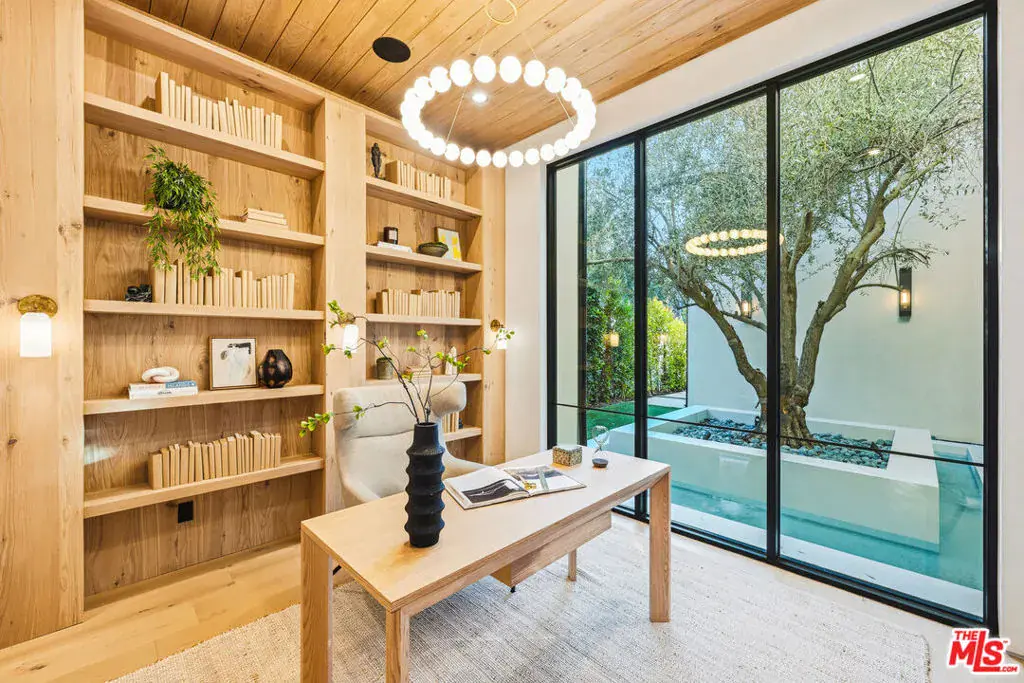 Experience elevated luxury in this newly built contemporary residence, spanning approximately 6,783 sq. ft. and showcasing exquisite designer finishes with a seamless indoor-outdoor flow. The grand entry sets the tone with soaring volume and warm wood floors that carry throughout the home. Recessed lighting, custom built-ins, and thoughtful details create a refined ambiance in every room. The chef’s kitchen stands as an elegant expression of craftsmanship, featuring custom cabinetry, Taj Mahal marble countertops, and premium stainless-steel appliances. A sleek, modern wall-mounted wine display anchors the adjacent dining area, which sits beside a stunning formal living room complete with a statement fireplace – ideal for intimate gatherings or sophisticated entertaining. An expansive family room offers additional custom built-ins and fully pocketing doors that erase the boundary between indoors and out. This level also includes a beautifully appointed ensuite bedroom, a private office with built-ins overlooking a serene courtyard, and a versatile bonus room – perfect for a gym, studio, or additional bedroom – enhanced by retractable pocket doors. A state-of-the-art home theatre further elevates the entertainment experience. Upstairs, the luxurious primary suite features a charming balcony and an expansive sun deck off of the primary bath – complete with dual sinks, a dedicated vanity, a soaking tub, and an oversized rain shower. Three additional ensuite bedrooms complete the upper level, each designed with comfort and style in mind. Resort-style living continues outdoors with a fully equipped gourmet barbecue area and refrigerator, a sparkling pool and spa, and a fire pit lounge perfect for evening gatherings. The property is fully automated with Control4 smart-home technology. Ideally located just south of Ventura Blvd, this sophisticated residence offers unparalleled access to the area’s most popular shops, cafes, and dining destinations.