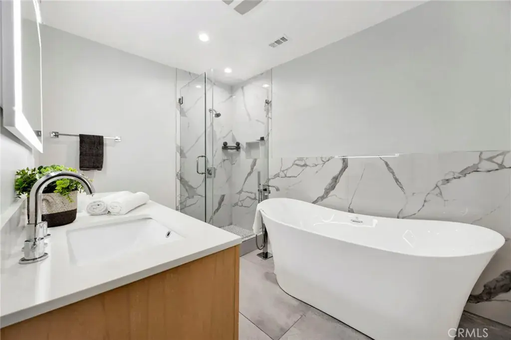 Location, Location, Location. Welcome to this stunning, modernized turnkey home located south of the Boulevard in prime Encino. This thoughtfully designed and meticulously executed, single-story residence features 4-bedroom, 2.5-bath (Prox 2,440 sq ft) offering the ideal blend of comfort, style, and functionality. Step into the spacious and bright living, dining, and the family room all designed to provide an inviting atmosphere-perfect for both everyday living and raising a family. The main house with modern open floor plan is filled with natural light and centers around a stylish kitchen with a generous size island that seamlessly opens to the dining area. The multi-panel glass doors in the family room fully retract, creating a true indoor- outdoor flow. Outside, enjoy a large, beautiful pool and built in BBQ- and entertainer’s dream and ultimate setting for embracing the southern California lifestyle. The home has featured a security gate, enhancing both comfort and curb appeal, and is equipped with solar panels for added energy efficiency and cost savings. An exceptional bonus is the permitted ADU ( prox 390 sq ft), 1 bedroom, 1 bathroom located at 4910 Alonzo Ave., feature it’s own private entrance. This space offers endless possibilities- ideal for extended family, guests, or generating an additionally rental income. The property is perfectly situated within walking distance to shopping, fine dining, and top rated schools, and with easy access to major freeways. This home delivers the ideal balance of elegance, convenience, and modern living. Schedule for private showing.