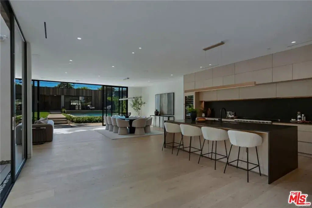 Enter an environment where the warmth of organic modern architecture meets stunning new luxury construction. Elegant 6BR + 5.5BA property sits on an almost 11,000 sqft lot + includes a 1BR + 1BA guest house w/its own address. Gorgeous open floor plan features sleek kitchen w/center island, quartz counters, white oak cabinets + stainless steel appliances including a Wolf 8 burner range w/double oven. Living room w/fireplace has huge sliders leading out to the extensive grassy grounds. Kitchen overlooks a private deck area w/Japanese landscaping. Both the kitchen + dining area have custom designed light fixtures. The gentle curves of the home’s exterior can be found in details throughout the house, such as the fireplace, the curved corners of rooms + even the concrete steps throughout the exterior. The opulent primary suite has everything. Huge floor to ceiling windows slide open for viewing the amazing grounds. A separate area for lounging opens to a spacious side balcony. Two custom walk-in closets have extensive built-ins. Gorgeous primary bath w/soaking tub has an oversized shower w/dual rain heads + seating benches, plus double sinks + vanity area. Second level includes a sitting area/library w/dramatic skylight + 2 more ensuite BR’s. An airy floating staircase connects the two levels, w/another 2BR + 2BA below. The grand living space is accentuated w/high ceilings, extensive use of glass + is infused w/a spectacular amount of natural light. Step outside + encounter the exceptional park-like oasis. An immense pool w/spacious baja shelf also includes a spa. Amazing outdoor entertaining area features stainless steel BBQ, a smoker, a refrigerator, a pizza oven, stainless steel sink + tons of cabinets. At the back of the private grounds sits the jewel of the property – a 1BR + 1BA ADU with 800 sqft that looks like a mini version of the main house, w/the same unique wood exterior + curves inside + out. The floor plan includes an extensive kitchen w/quartz center island + living room. It would make a great office or a multi-generational compound. The living space sliders completely open to the patio creating a perfect indoor outdoor flow. Its view looking out over the grounds + backside of the main house creates a dramatic backdrop for everyday living. This is a one of a kind property. Come satisfy your appetite for something new + break away from all the “modern farmhouse” + “modern box” replicants. And experience over 6,100 sqft of new architectural luxury.