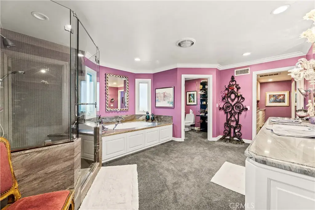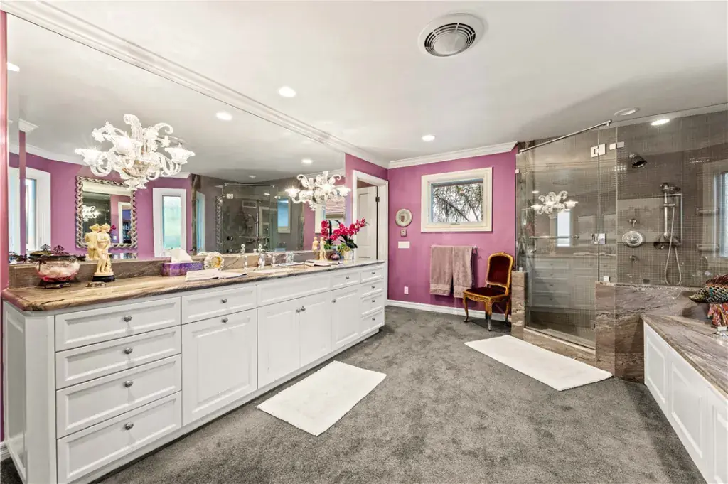 Step inside to experience a beautifully designed floor plan balancing functionality and comfort. The residence features a formal dining room perfect for elegant dinner parties and a cozy casual dining area for daily gatherings. At the heart of the home, a custom bar serves as a striking centerpiece for effortless entertaining. Additional highlights include two fireplaces and a luxurious primary suite with dual walk-in closets for ample storage and convenience.