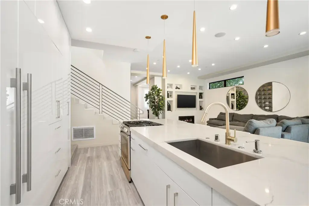 South of the Boulevard and just minutes from Encino Commons, this turnkey custom home blends modern comfort, high design, and everyday security seamlessly. Built in 2019 with designer craftsmanship, it has been meticulously maintained ever since. A gated motor court accommodates up to four cars before reaching the attached garage. 10 foot ceilings open the space up instantly upon entry, where a formal dining room rests alongside the entering corridor leading into the main living area. The sunken family room is bright & airy, and connects to the plush kitchen and also leads into the yard through giant fleetwood doors. Resort style backyard starts with a covered patio with built in speakers, features a cabana, large grass pad, and heated pool with tub. Super private in the backyard and the perfect place to gather, party, relax, or use as a playground for kids. Inside the home are 4 bedrooms, all equipped with en suite bathrooms. One bedroom down, three bedrooms up. Each of the three upstairs bedrooms enjoy a private balcony, with the master’s spanning nearly the entire width of the home overlooking the yard. The master also has a generous walk-in closet with skylights and custom built in organizers/dressers. Laundry room upstairs as well, right outside of a large landing pad in between the rooms, which is also another valuable space for additional furniture, shelves, study area, etc. The garage can be used for cars, a gym, extra room, or an office- it includes A/C and heat and tile floors. Home also features 3 A/C and heating zones, solar, security cameras, and a roll down security shutter. Easy access to Encino’s best amenities including top-rated schools, Equinox, Trader Joe’s, Encino Commons, Balboa Park, Los Encinos State Historic Park, El Caballero Country Club and the 101 freeway.