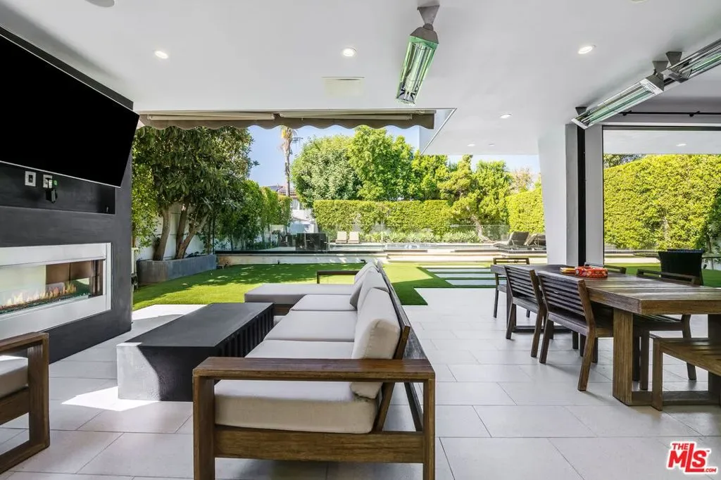 Sleek, custom-built modern masterpiece located on a quiet, tree-lined street in prime Encino. This one-of-a-kind residence showcases high-quality craftsmanship, clean architectural lines, and seamless indoor-outdoor flow across an expansive open layout. A dramatic entry welcomes you into soaring double-height ceilings and walls of glass that flood the interiors with natural light. The main level features wide-plank European oak floors, a spacious great room with fireplace, and retractable glass doors that open to the private backyard oasis. The gourmet kitchen is a showpiece, outfitted with custom European cabinetry, sleek stone countertops, and a large center island. Top-of-the-line appliances include double ovens, dishwasher, microwave, espresso machine, and wine cooler, complemented by a Sub-Zero refrigerator. A formal dining area and covered outdoor living room with fireplace make entertaining effortless year-round. Upstairs, the primary suite offers a private balcony overlooking the lush yard, a fireplace, large walk-in closet, and a luxurious spa-style bath with designer finishes. Each additional bedroom includes its own ensuite bath and walk-in closet. The backyard is a true retreat with a sparkling pool, spa, and manicured landscaping providing ultimate privacy and tranquility. Additional amenities include a two-car garage, surround sound, and security system with cameras. A rare blend of modern elegance and functionality – this exceptional Encino home is the epitome of sophisticated California living.