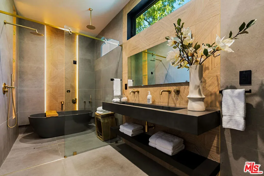 Introducing a stunning newer construction by STYLEBUILD in the highly sought-after Encino neighborhood, just moments from Ventura Boulevard. This exceptional residence blends luxury, quality craftsmanship, and modern design throughout. Set on an expansive ~9,000 sq ft lot, the property offers privacy with a fully hedged perimeter. Inside, a bright and open floor plan showcases a designer chef’s kitchen featuring top-of-the-line appliances, a large center island with seating, and seamless flow into the family and dining areas ideal for everyday living and entertaining. Custom sliding doors open to a resort-style backyard complete with a covered patio, pool, and spa, creating the ultimate indoor-outdoor California lifestyle. The gated front yard provides additional space for multiple vehicles or recreational use. The main level features a private primary suite with direct access to the backyard, along with an additional bedroom for guests or office use. Upstairs, you’ll find three spacious en-suite bedrooms, including a potential second primary suite. A rare opportunity to own a thoughtfully designed, move-in-ready home in one of Encino’s premier locations.