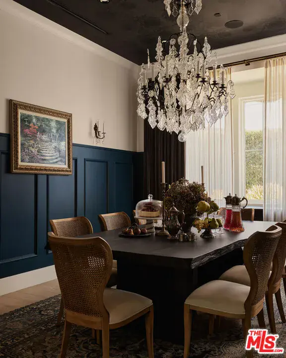 Tucked behind gates in the renowned Amestoy Estates where opportunities to own are rare, this extraordinary 6-bedroom, 7-bath residence offers approximately 7,200 square feet of refined elegance and character. Designed in its entirety by acclaimed Celebrity designer Kishani Perera, every detail was thoughtfully curated. The home blends sophistication with a rock-and-roll edge, featuring a hidden movie theater accessed through a bookshelf and multiple areas across the property that feel like a private resort. Custom reclaimed wood doors, warm built-ins, hand-selected wallpapers, cabinetry, lighting, and trim create a rich, layered interior, while vintage Parisian chandeliers and stained-glass windows add timeless charm. With parking for up to 13 cars, exceptional privacy, and a setting that truly lives like an estate, this is a rare and unforgettable retreat. Bold, distinctive, and completely one of a kind.
