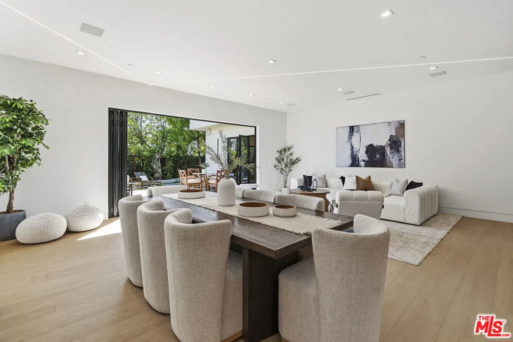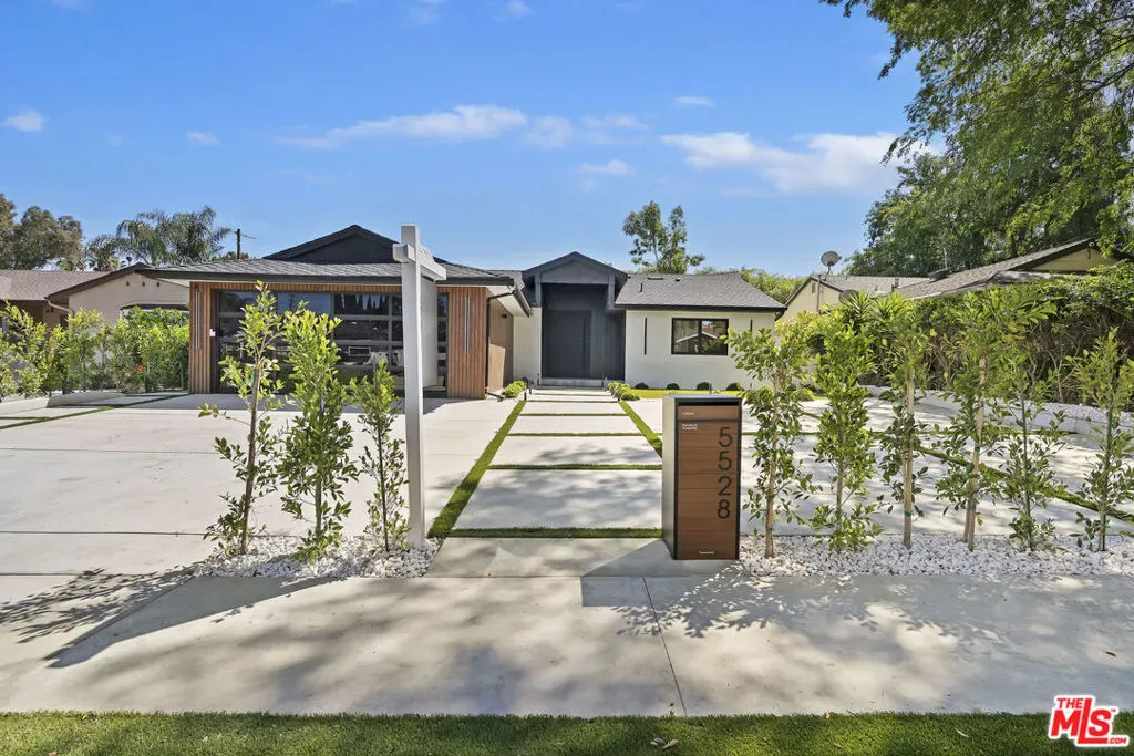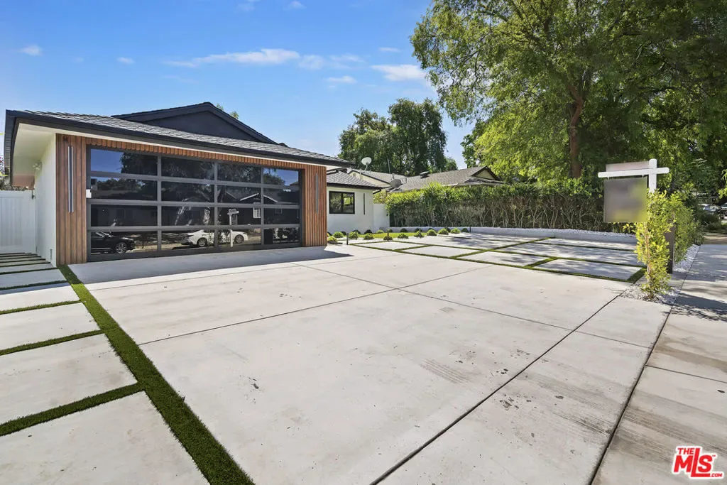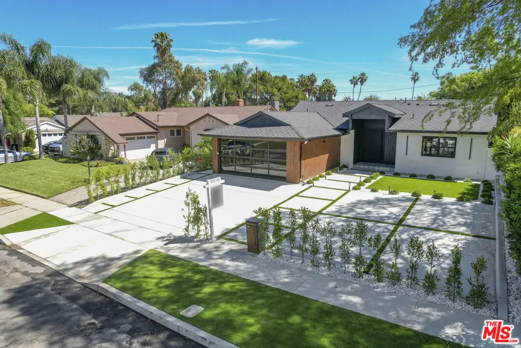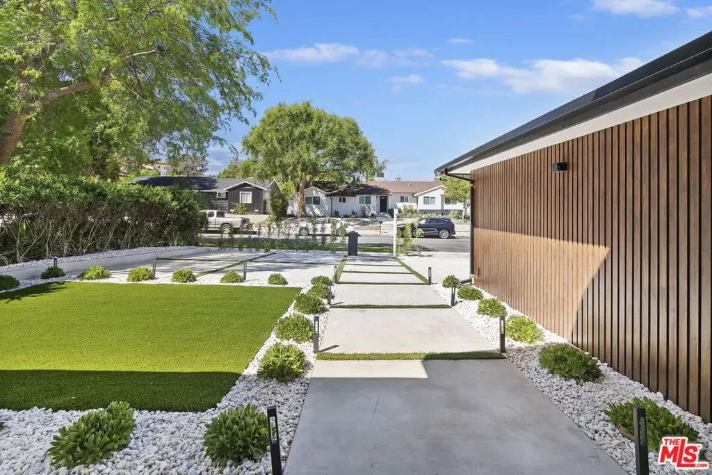 Welcome to this exquisite modern estate in the heart of Encino. This magnificent single-story residence offers 4 bedrooms and 4 bathrooms, thoughtfully designed with elegance, comfort, and seamless indoor-outdoor living in mind. As you step inside, you are greeted by an open-concept floor plan that flows effortlessly from the entryway to the backyard. The chef’s kitchen features custom cabinetry, premium Thermador appliances, a sleek modern island, and a spacious walk-in pantry with direct access to the garage perfect for everyday convenience. The living room is light-filled and inviting, highlighted by expansive sliding pocket doors that beautifully blur the line between indoor and outdoor living. Just off the entry, you’ll find a well-appointed in-law suite complete with its own bathroom and a custom-designed closet ideal for guests, extended family, or a private home office. The primary suite is a true retreat, featuring a luxurious spa-inspired bathroom, a thoughtfully designed walk-in closet, and sliding pocket doors that open to a serene outdoor deck, creating a peaceful and airy ambiance. Two additional bedrooms are conveniently located on the same wing, along with a dedicated laundry area and a stylish powder room. Beautifully landscaped front yard offers great curb appeal with clean modern lines, mature greenery, and a welcoming entry. The private backyard is designed for both relaxation and entertaining, featuring low-maintenance landscaping, ample space for outdoor dining and BBQ, and a serene setting ideal for gatherings or quiet evenings under the stars. Prime Encino location, centrally situated near parks, convenient freeway access, and an array of top dining and shopping options.