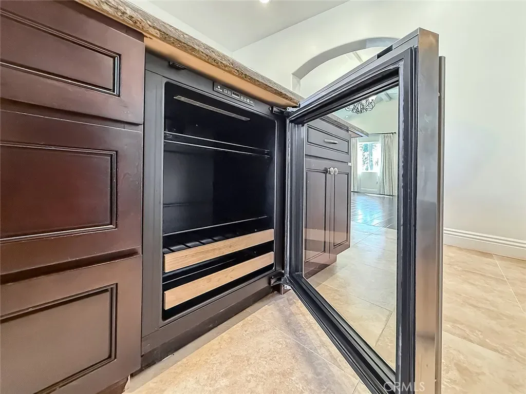 Each spacious bedroom is thoughtfully designed; three feature en-suite bathrooms for added privacy. The main level offers two comfortable bedrooms with two full baths, ideal for guests or a private home office setup. Upstairs, two en-suite bedrooms offer generous storage and spacious walk-in closets, creating comfortable and functional private retreats. The Primary Suite is a true sanctuary, featuring a cozy fireplace, a spa-like bathroom with a steam shower, Jacuzzi tub, and two balconies for fresh air and outdoor space. The Chef’s Kitchen impresses with a large center island, rich cabinetry, granite countertops, stainless steel appliances, a beverage cooler, a separate wine cooler with a built-in bar, and a generous walk-in pantry.