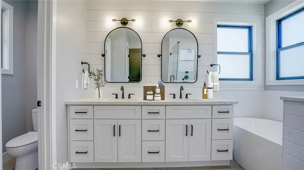 Buyer from previous escrow cancelled with no fault of the property. This absolutely stunning home is new construction that has just been completed! Built new from the ground up, this two story modern farmhouse is the perfect combination of prestige, beauty, and elegance! This 4 Bedroom 4 Bathroom house is simply gorgeous inside and out! Upon entering this house, you will be taken away by the extra tall ceilings, bedroom on the first floor with its own bathroom, half bathroom, and huge great room consisting of the Living Room with fireplace, dining room, and the kitchen. The kitchen is the highlight of this space with a huge island, high end appliances, and large walk-in pantry. The open stairs lead to a large open loft perfect for a home office, den, or sitting area. Once upstairs there are 2 more bedrooms, laundry room, large full bathroom, and the primary bedroom. This massive primary bedroom is an elegant space with a large walk-in closet, balcony for quiet time with a good book and cup of coffee, and the primary bathroom with walk-in shower and freestanding tub. The exterior is beautifully manicured with great curb appeal, and has a finished detached garage in the rear. This property is elegant, charming, and full of character and detail! The lot is almost 9,000 square feet, and consists of this beautiful home, detached garage, and LOTS of additional space for possibly a pool or maybe even an ADU! This is the third and final house in this development, and we saved the best for last! This house is nestled in between two other new house, and the new finished on this property really set it apart from the others! This property will not last long! Information contained within this listing is to be deemed reliable, but not guaranteed. Buyer to perform their own due diligence to satisfy themselves of all information contained in this listing. Some pictures have been enhanced by virtual staging.