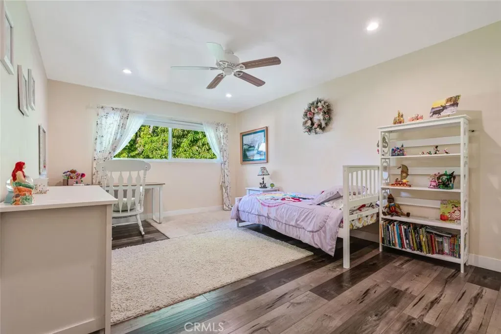 There are four generously sized bedrooms and three updated bathrooms, including a spacious primary suite with a large walk-in closet and an oversized bathroom with a double vanity.