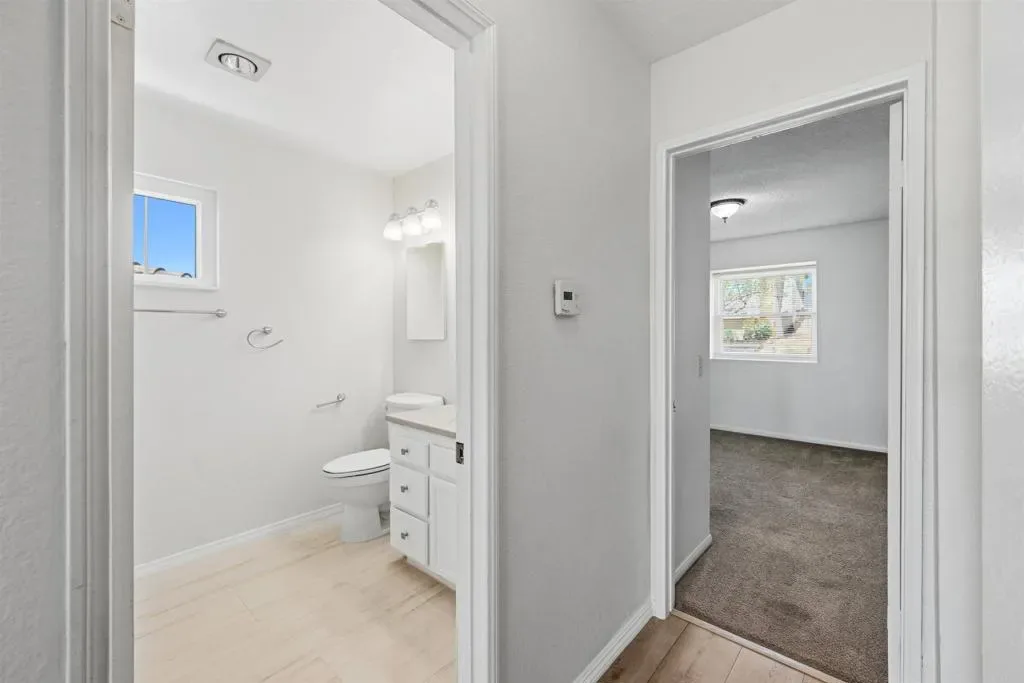 Tucked into a well-maintained Escondido neighborhood, this beautifully refreshed 2-bedroom, 2-bathroom single-family home offers a perfect blend of comfort, style, and low-maintenance living across 1,054 sq. ft. Recently upgraded with brand-new flooring, fresh interior paint, and two fully remodeled bathrooms, the home delivers a clean, modern feel from the moment you step inside. The light-filled, open-concept layout seamlessly connects the living, dining, and kitchen areas, creating an ideal space for both everyday living and entertaining, while the kitchen features a newer stove and recently added dishwasher for added functionality and appeal. Step outside to a private deck with sweeping views of Escondido—perfect for morning coffee or unwinding at sunset—along with a pet-friendly yard that offers just the right amount of outdoor space without heavy upkeep. With low HOA fees, energy-efficient features, ample storage, and a highly functional layout, this home is an excellent opportunity for first-time buyers, downsizers, or anyone seeking a turnkey property in a convenient, walkable location close to parks, schools, and shopping—delivering the best of North County living in a move-in-ready package.