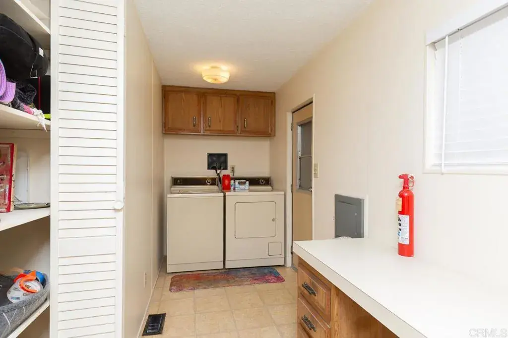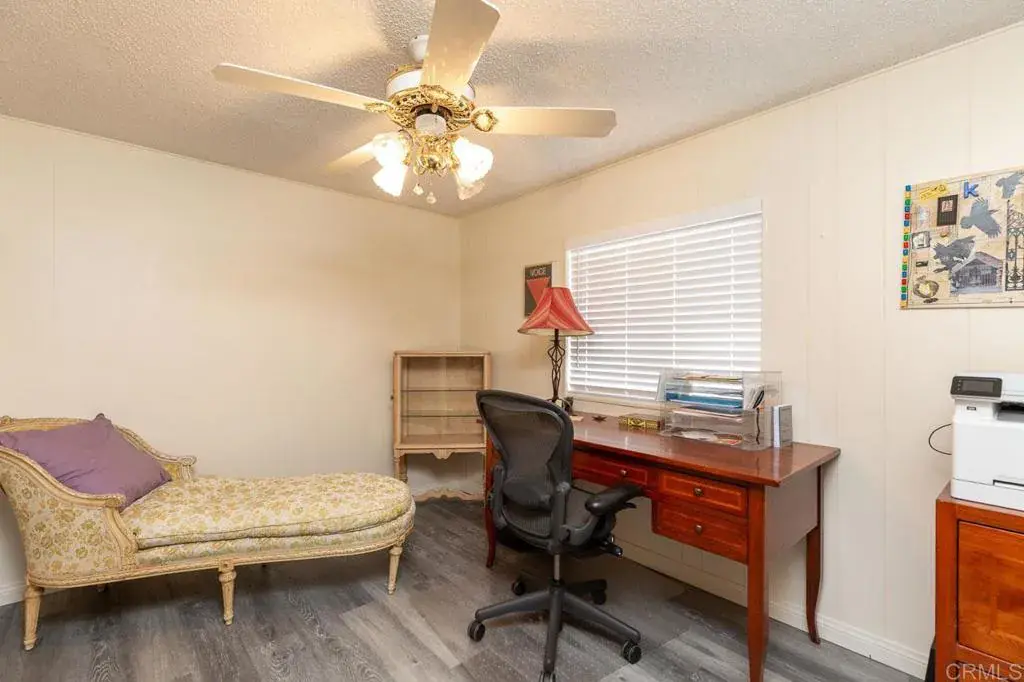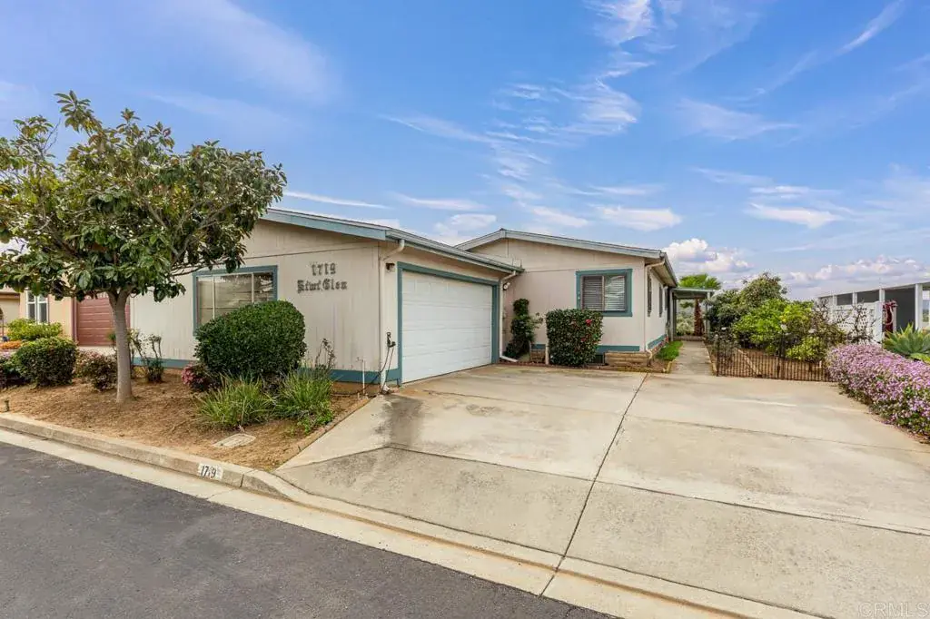 Stunning Mountain Views from Your Private Cul-de-Sac Retreat in Citrus Gardens 55+ Community. Perched at the end of a peaceful cul-de-sac in the desirable Citrus Gardens community of North County Escondido, this charming two-bedroom, two-bath manufactured home captures stunning western mountain views that transform into breathtaking sunsets each evening. A sliding glass door opens from the living area to your private outdoor sanctuary—a covered patio overlooking the San Marcos mountains; with a fenced side yard that’s home to your own citrus trees with mature lemon and avocado among established landscaping and raised bed gardens. This tranquil 5,583 square foot lot offers both morning sunrise and evening sunset vistas with no through traffic, creating a peaceful retreat perfect for relaxation and outdoor enjoyment. Inside, vaulted ceilings and an open floor plan create a bright, welcoming space filled with natural light from double-paned windows. Fresh interior paint and vinyl plank flooring flow throughout this west-facing home that welcomes cool cross-breezes, with wide hallways for comfortable navigation. The kitchen features cabinets, a bright garden window, pantry storage, and a gas range, with an open flow perfect for daily living or entertaining guests. The laundry room exceeds expectations with washer/dryer included, plus a built-in desk, extra counter space, and abundant storage—ideal for a workspace or hobby area. Both generously sized bedrooms provide comfort and privacy, with the primary suite featuring a walk-in closet and spa-like bathroom complete with Jacuzzi tub, walk-in shower, and built-in cabinets for plentiful storage. Stay comfortable year-round with a brand new furnace installed in 2024, central air conditioning, and three ceiling fans positioned throughout. The impressive two-car garage features extensive cabinets, a workbench, drawers, and adjustable shelving for all your storage and project needs, plus a spacious driveway accommodating additional vehicles, while a storage shed provides extra space for tools and equipment. Nestled in the intimate 106-home Citrus Gardens 55+ community at the end of a quiet cul-de-sac, this home offers exceptional value with land ownership and no space rent—just a low $195 monthly HOA that covers trash collection, basic cable, and access to resort-style amenities including a clubhouse with banquet facilities, sparkling pool, spa, and shuffleboard courts, with convenient guest parking for visitors. There are no Mello Roos taxes and no land lease fees to worry about. Located minutes from Costco, Vons, restaurants, coffee shops, banking, pharmacy services, Palomar and Kaiser Hospitals, scenic hiking and biking trails, Dixon Lake, Woodland Park, nearby golf courses, and beaches, with easy access to the I-15 freeway and El Norte Parkway bus stops for convenient transportation. This home is eligible for VA, FHA, and Fannie Mae financing options and welcomes one small pet under 16 inches at the shoulder. Schedule your showing today.