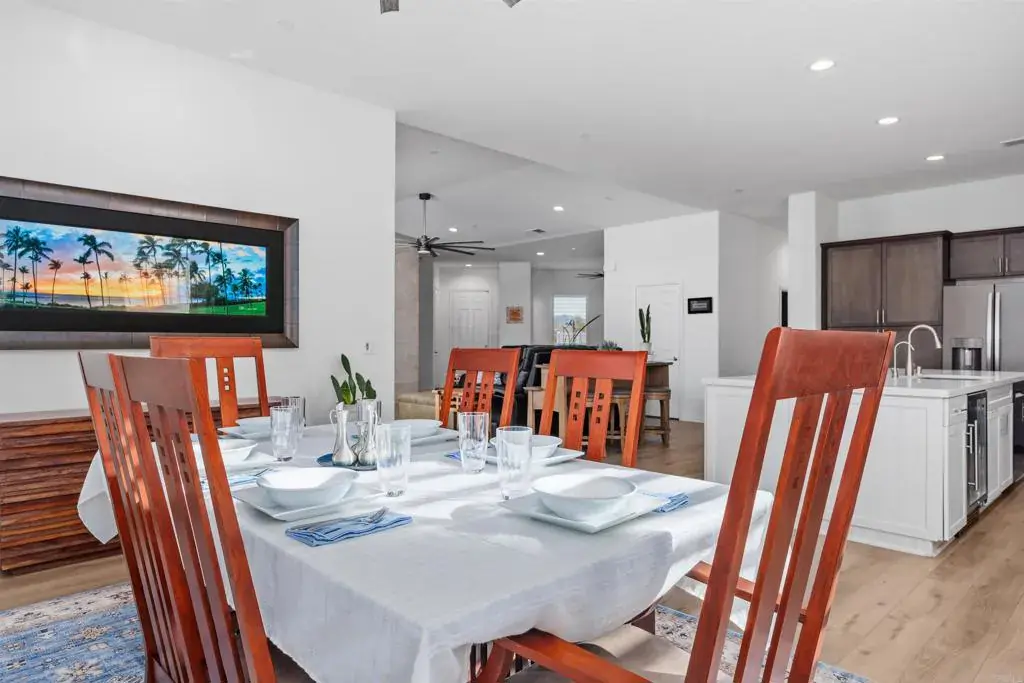 Experience seamless indoor-outdoor living in this stunning single story, 2,945 sq. ft. contemporary retreat. Bathed in natural light, the expansive open floor plan greets you with soaring ceilings, a cozy fireplace, and stylish vinyl flooring. The versatile front-entry game room offers the perfect flex space, while the chef’s kitchen shines with modern cabinetry, vast counter space, and a generous dining area. From the great room, retreat through panoramic folding doors to a private backyard oasis designed for world-class entertaining. This exterior sanctuary features a soothing wall fountain, a built-in fire pit, and a premium outdoor kitchen—complete with a BBQ, fridge, and gazebo. Landscape is low-maintenance with drip irrigation and artificial turf. The private primary suite serves as a true refuge, featuring a spa-like ensuite with a large oval soaking tub and huge walk-in closet. With four spacious bedrooms, and 3.5 modern baths, every inch of this home exudes comfort. Don’t miss the pristine garage with epoxy flooring and custom built-in cabinetry. Garage is prewired for an electrical vehicle charging station Enjoy significant monthly savings with paid-for solar, a low tax rate and low HOA fees. This beautiful home is located in South Escondido on a flag lot, providing privacy and convenient freeway access for commuters. The home delivers a rare combination of privacy, luxury and financial peace of mind, with single story living. Do not miss your opportunity to own this gorgeous home!