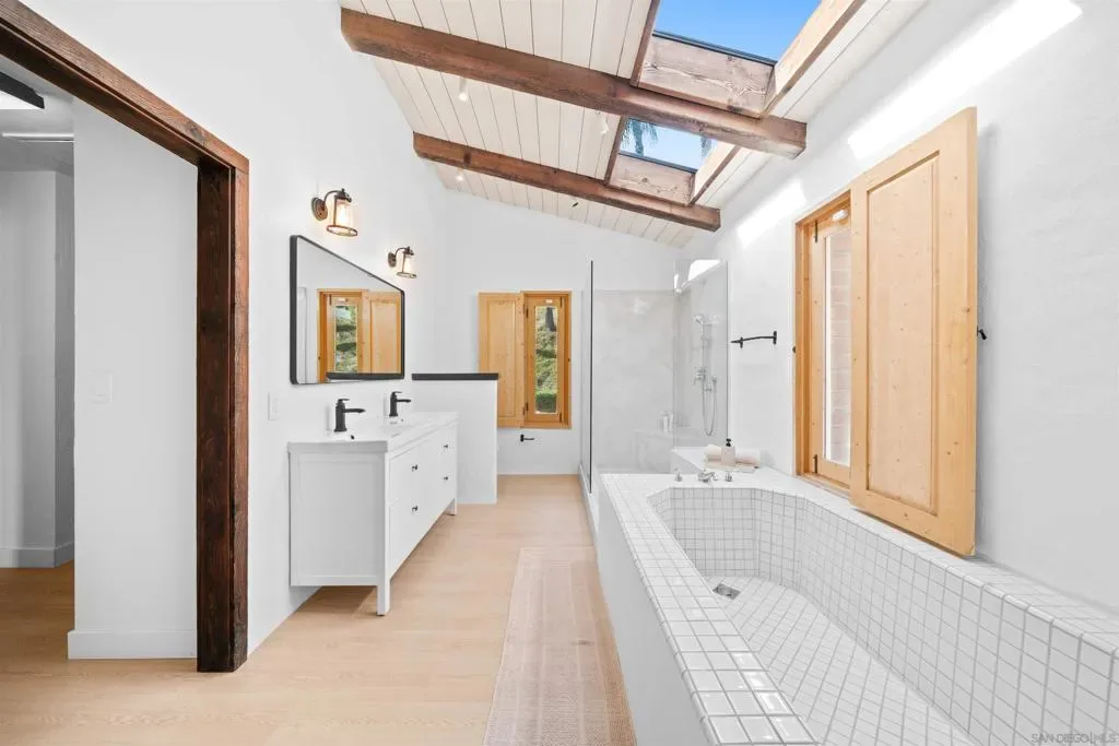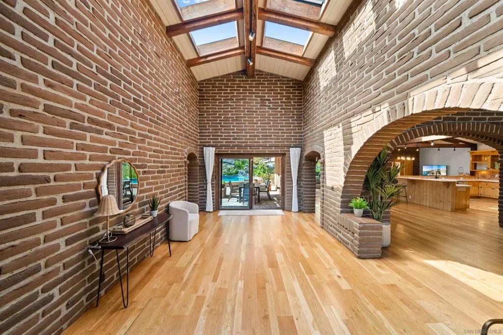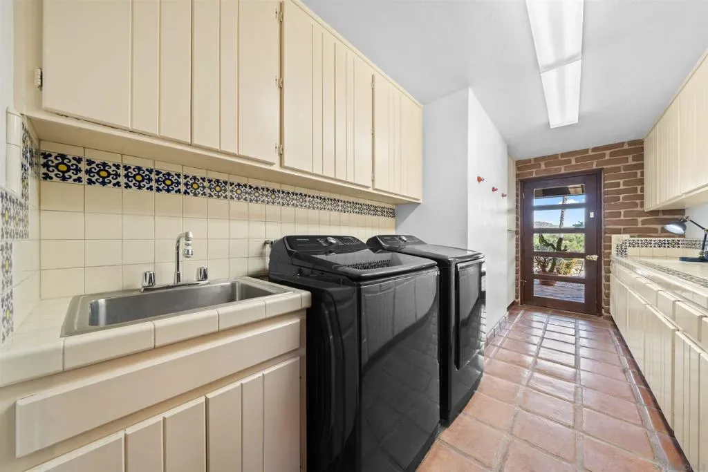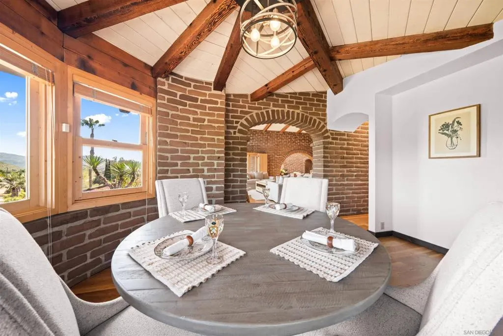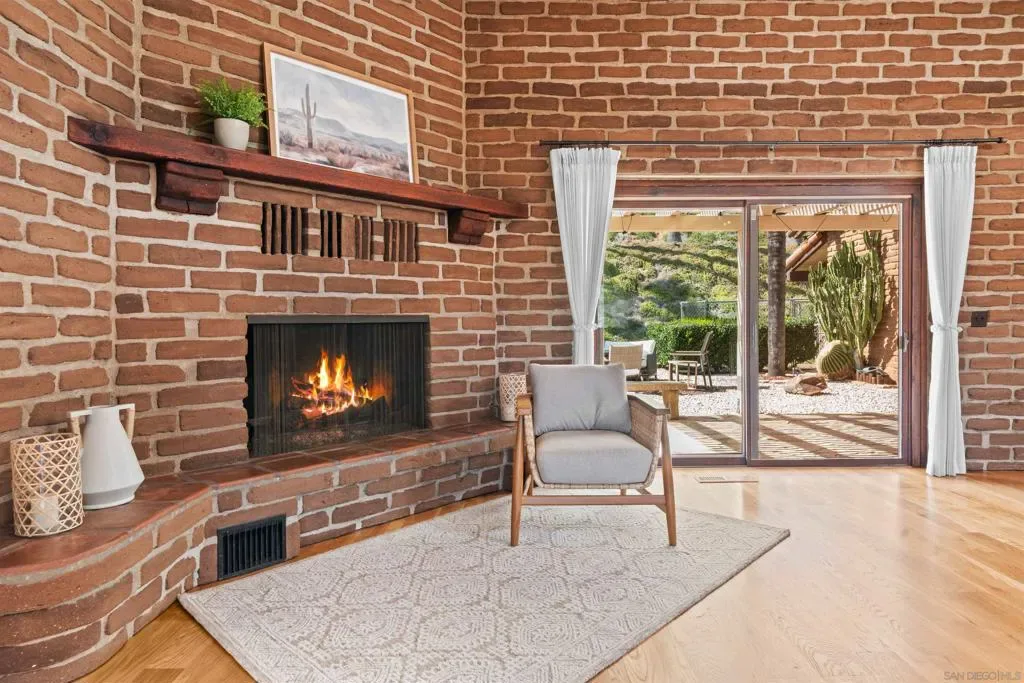 Perched atop a private hillside, this exceptional Spanish-style Adobe estate offers sweeping panoramic views and ultimate privacy on approximately 4.55 acres of beautifully usable land—a rare blend of scale, serenity, and functionality. A long, winding driveway leads through a gated entrance to a warm and inviting residence surrounded by lush landscaping, mature palms, and thoughtfully designed lighting that creates a stunning ambiance at sunset. Designed in timeless Spanish Mission style, the home features authentic adobe construction, clay tile roofing, soaring ceilings, exposed wood beams, and rich architectural details. Expansive windows fill the interior with natural light, highlighting multiple living areas and fireplaces, perfect for both everyday living and entertaining. The open-concept kitchen flows seamlessly into the main living and dining areas, creating an ideal indoor-outdoor California lifestyle. Step outside to expansive grounds with breathtaking sunrise and sunset views, offering space for entertaining, relaxation, or future enhancements. A detached garage provides flexible use as a workshop, studio, or additional storage. The property includes generous flat, usable land with potential for an ADU or additional structures (buyer to verify), ideal for multigenerational living or investment. Recent improvements include a refreshed pool with new equipment, upgraded water heater, refinished flooring, updated bathrooms, new perimeter fencing, enhanced landscaping, and a professionally serviced roof. A rare opportunity!