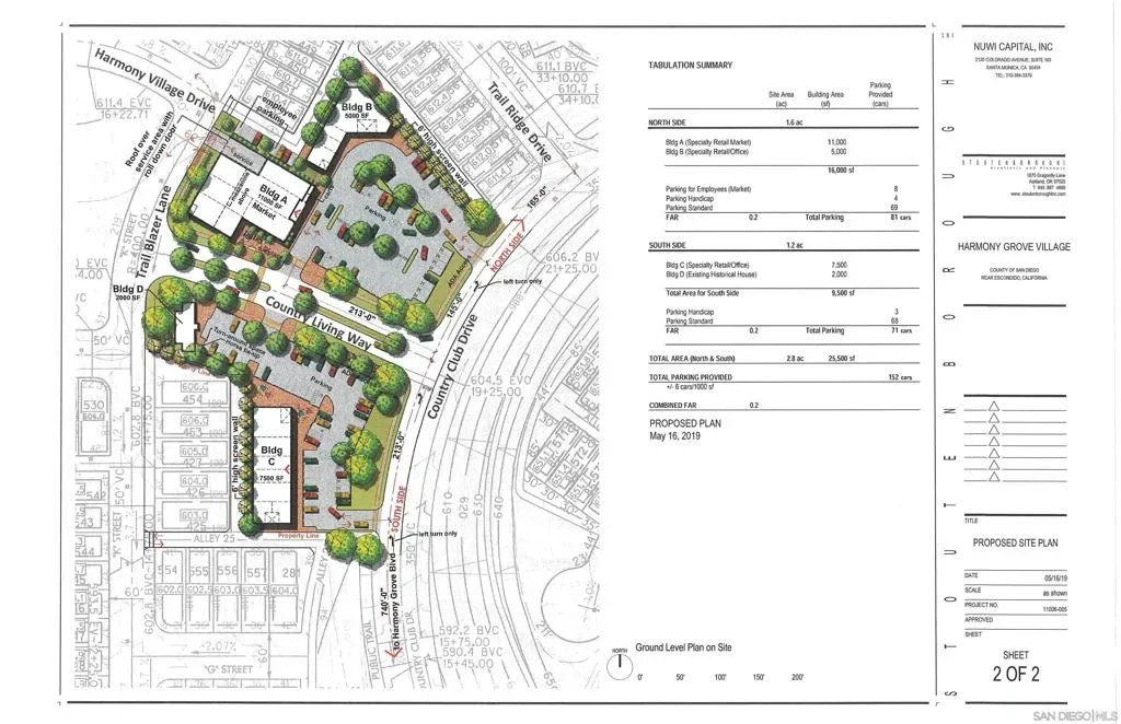 Harmony Grove Village Center, a rare offering of two parcels entitled for commercial retail centered in a new underserved residential development. Parcel 235-571-571-17 features 1.62 acres with site plans to accommodate a 11,000 sq ft plus mezzanine and a 5,000 sq foot of additional shops/restaurants. Parcel 235-570-56 features 1.27 acres with site plans to accommodate 7,500 sq ft of shops/restaurants and the historic Johnson Ward Homes that provides another 2,000 square feet of possible office/medical space. City may consider modification to live/work/play units. New roads from Citracado provide exceptional area access from Escondido, Elfin Forest and San Elijo Hills. Exceptional demographics are excellent for anchor boutique grocery store, preschool/daycare, salon, and quick service deli/food service and/or restaurant.