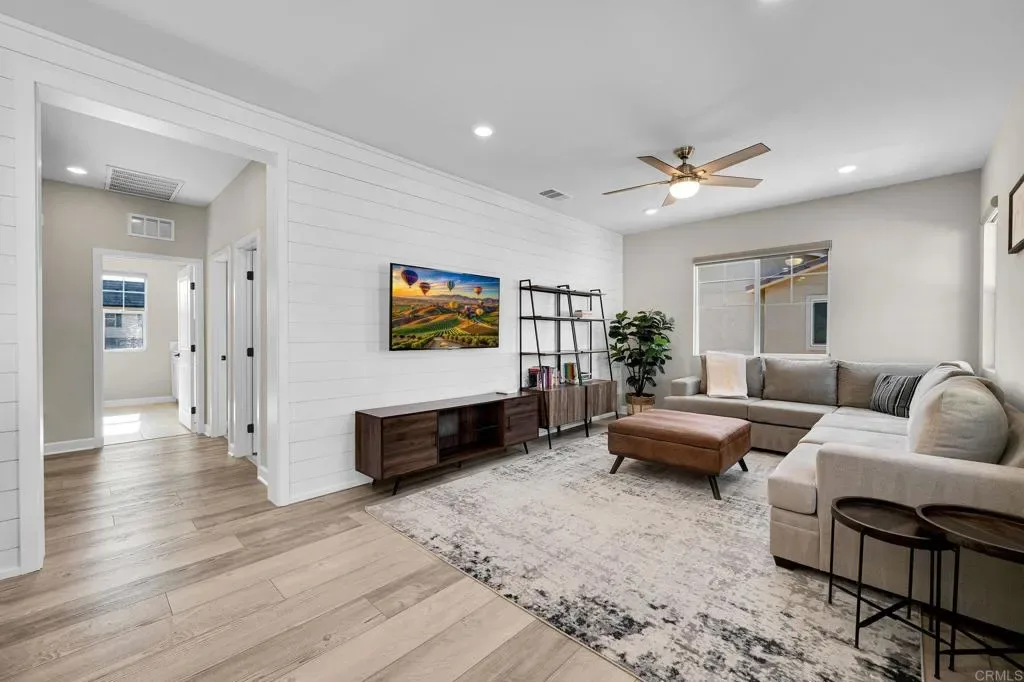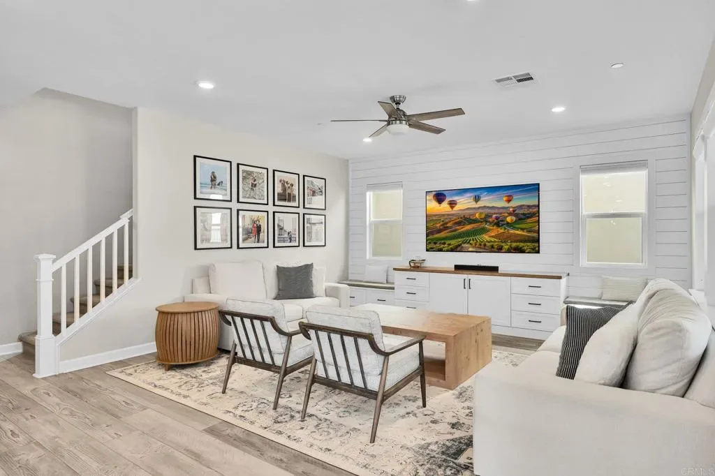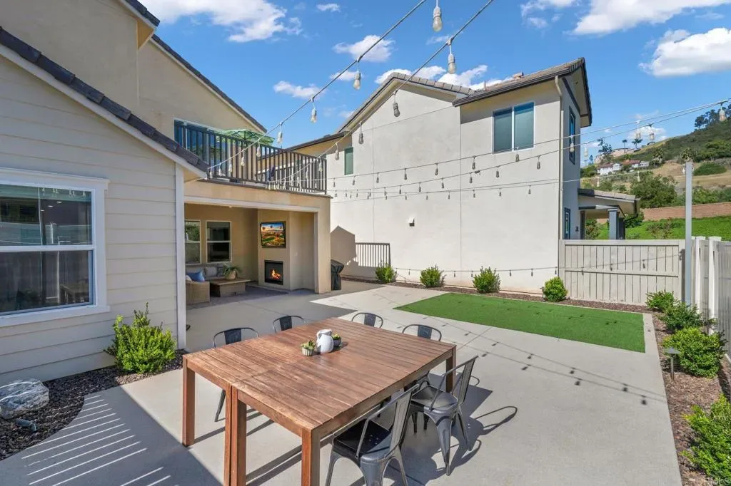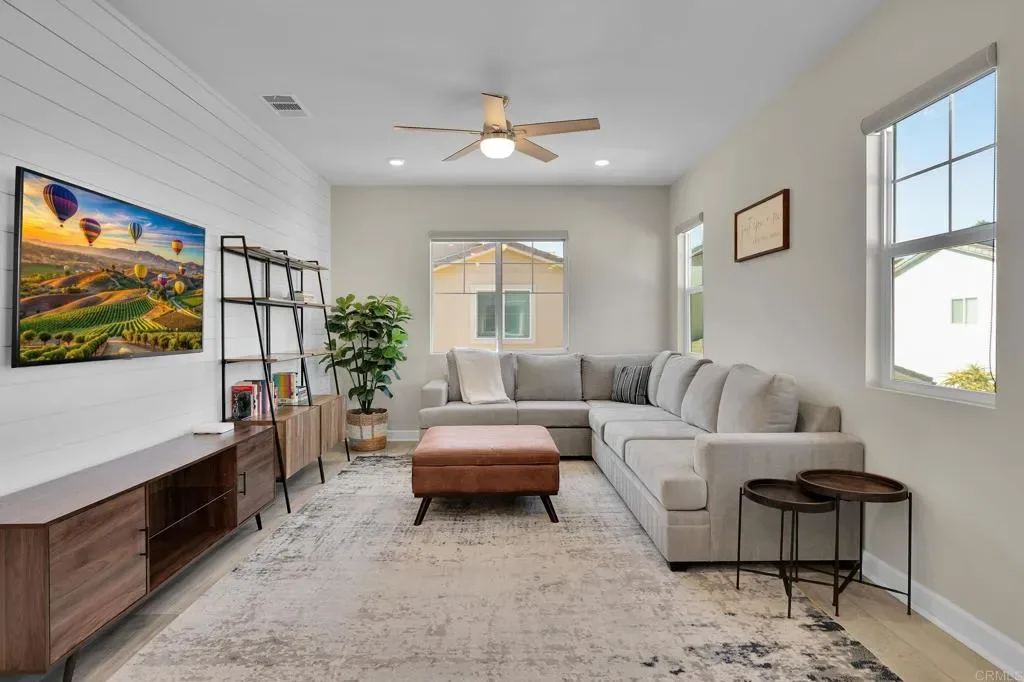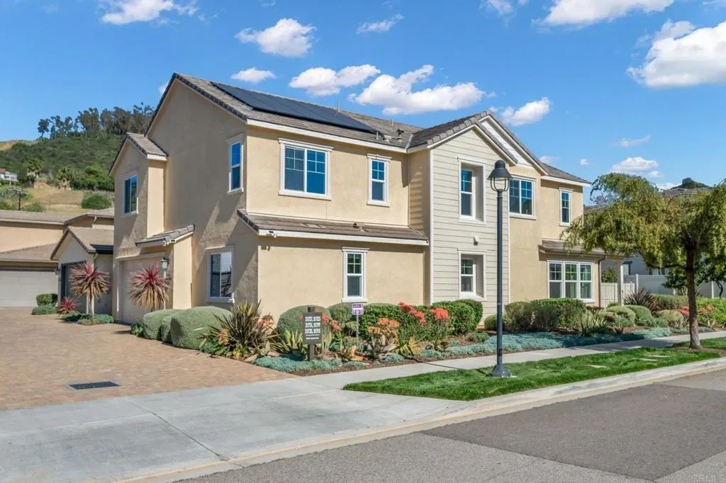 Welcome to this beautifully upgraded home in the highly desirable community of Harmony Grove Village in Escondido. This single-family detached home with no shared walls has been thoughtfully enhanced with over $50,000 in upgrades since purchase, this home blends modern design, functionality, and comfort throughout. Step inside to find stunning large plank luxury vinyl flooring, custom built-ins in the living room, and upgraded window casings that add a refined touch. The open-concept layout flows into a stylish kitchen featuring a custom backsplash, upgraded sink, and all appliances included—perfect for both everyday living and entertaining. Upstairs, a spacious loft offers flexibility for a home office, playroom, or media space, complete with its own custom backsplash detail. Additional interior highlights include a built-in mudroom “mushroom” area, soft water system, and reverse osmosis drinking water for added convenience and quality. The backyard is designed for relaxation and entertaining, featuring added landscaping with mulch, decorative rock, lighting, and an outdoor TV that conveys with the property—creating the perfect space to unwind. Energy efficiency is a standout with 10 solar panels on a PPA at approximately $100/month, along with an EV charger in the garage. Garage storage racks are also included for added functionality. Additional features include a Ring alarm system, all curtains conveying, and thoughtfully selected upgrades throughout that make this home truly move-in ready. Located in a vibrant community with parks and trails. This is a rare opportunity to own a turnkey home with premium upgrades in one of Escondido’s most sought-after neighborhoods. Move-in ready!