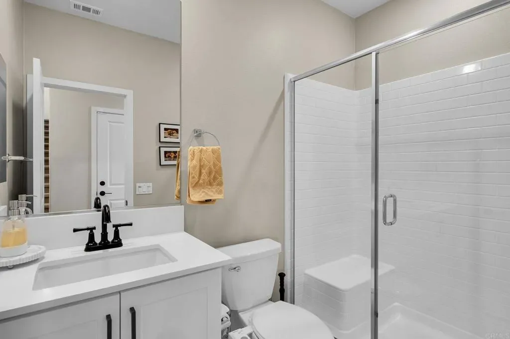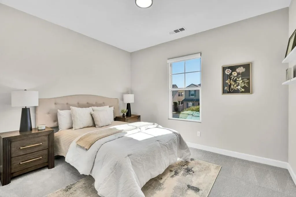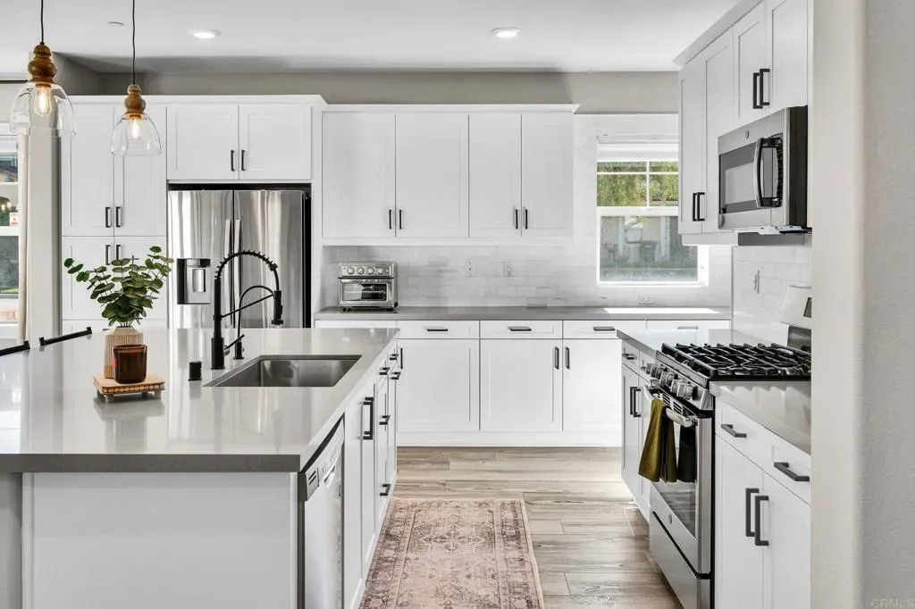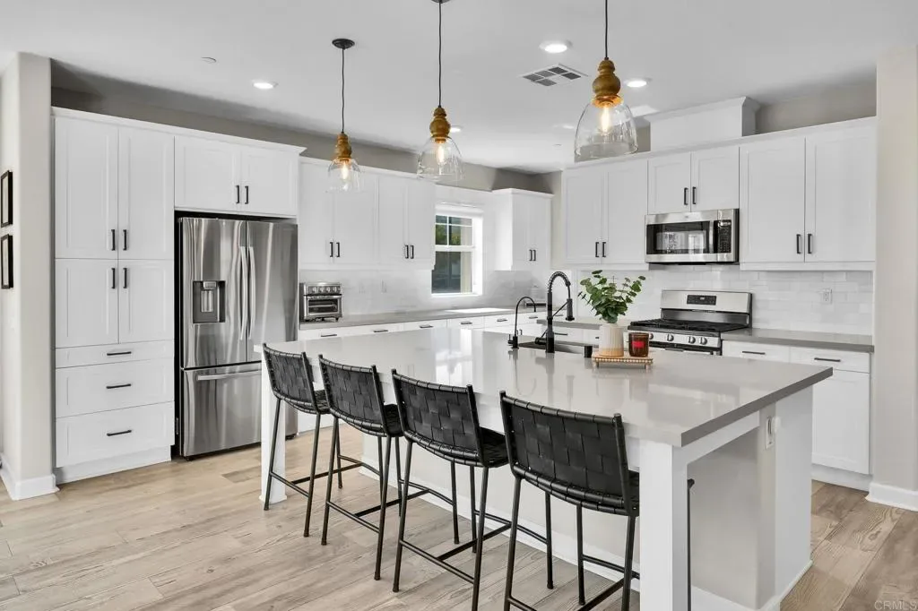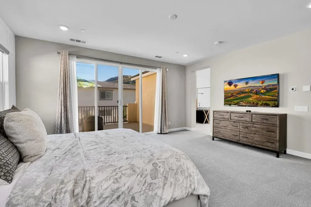Welcome to this beautifully upgraded home in the highly desirable community of Harmony Grove Village in Escondido. This single-family detached home with no shared walls has been thoughtfully enhanced with over $50,000 in upgrades since purchase, this home blends modern design, functionality, and comfort throughout. Step inside to find stunning large plank luxury vinyl flooring, custom built-ins in the living room, and upgraded window casings that add a refined touch. The open-concept layout flows into a stylish kitchen featuring a custom backsplash, upgraded sink, and all appliances included—perfect for both everyday living and entertaining. Upstairs, a spacious loft offers flexibility for a home office, playroom, or media space, complete with its own custom backsplash detail. Additional interior highlights include a built-in mudroom “mushroom” area, soft water system, and reverse osmosis drinking water for added convenience and quality. The backyard is designed for relaxation and entertaining, featuring added landscaping with mulch, decorative rock, lighting, and an outdoor TV that conveys with the property—creating the perfect space to unwind. Energy efficiency is a standout with 10 solar panels on a PPA at approximately $100/month, along with an EV charger in the garage. Garage storage racks are also included for added functionality. Additional features include a Ring alarm system, all curtains conveying, and thoughtfully selected upgrades throughout that make this home truly move-in ready. Located in a vibrant community with parks and trails. This is a rare opportunity to own a turnkey home with premium upgrades in one of Escondido’s most sought-after neighborhoods. Move-in ready!