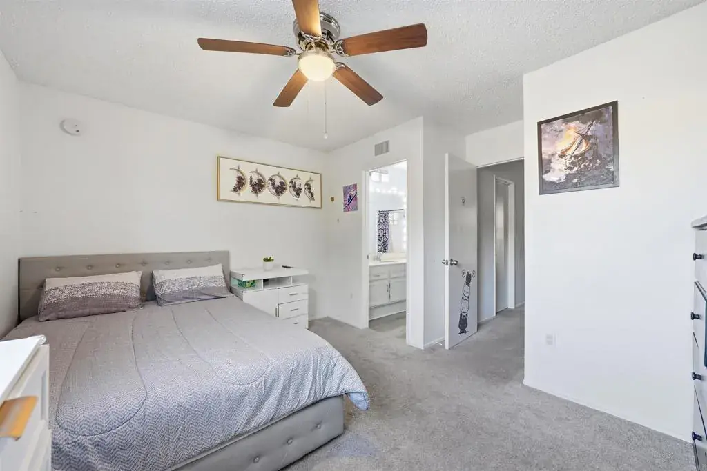 Set in the scenic hills of North Escondido, this light-filled 4-bedroom, 3-bath home offers 1,964 sq ft with a functional layout, generous living space and strong bones, making it an ideal option for buyers looking to customize and add value over time. The home is fully livable while being a blank canvas for future updates. High ceilings and abundant natural light create an open, airy feel, while a fireplace in the dining room adds warmth and character for everyday living and entertaining. A full bedroom and bathroom on the first floor provide ideal options for multi-generational living, guests, or a work-from-home office. Upstairs, the remaining bedrooms offer space and privacy for the rest of the household. Enjoy a private backyard with planter beds, perfect for gardening or relaxing in a peaceful setting surrounded by trees and mountain views. This home is walking distance to the community pool and close to scenic walking trails throughout the neighborhood. Additional highlights include a 2-car garage and solar, offering both convenience and efficiency. With beautiful surroundings and a thoughtfully designed layout, this home delivers a serene lifestyle within a well-maintained community close to everyday amenities.