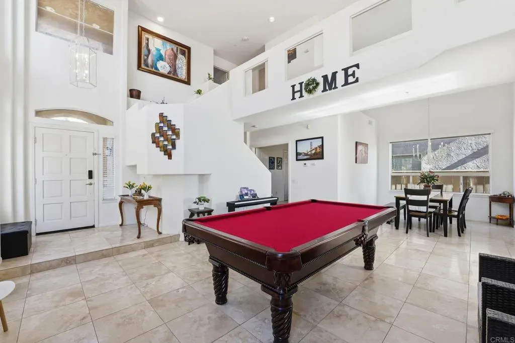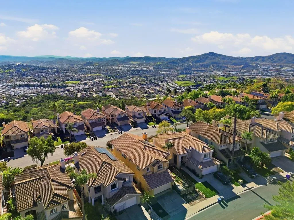 Huge $26K Price Reduction! Beautiful 4-bedroom, 3-bath home with fully paid NEM 2 solar in the prestigious guard-gated community of Emerald Heights. The flexible floor plan features a downstairs bedroom and full bath, ideal for guests, multigenerational living, or a private office. Soaring ceilings and floor-to-ceiling windows fill the home with natural light across 2,330 sq. ft. Travertine flooring enhances the main level, while the upstairs showcases high-gloss real hardwood floors. The spacious primary suite offers stunning panoramic views of city lights, surrounding mountains, and vibrant sunset skies. Recent upgrades include new Wi-Fi-enabled stainless steel kitchen appliances, new washer and dryer, EV charging capability in the garage, and a newer HVAC system. The yard features low-maintenance landscaping, new pavers, and updated fencing, creating a great space for relaxing or entertaining. Residents of Emerald Heights enjoy resort-style amenities including a junior Olympic pool, spa, tennis and pickleball courts, parks, walking trails, and a clubhouse hosting community events throughout the year. Located in the award-winning San Marcos Unified School District.