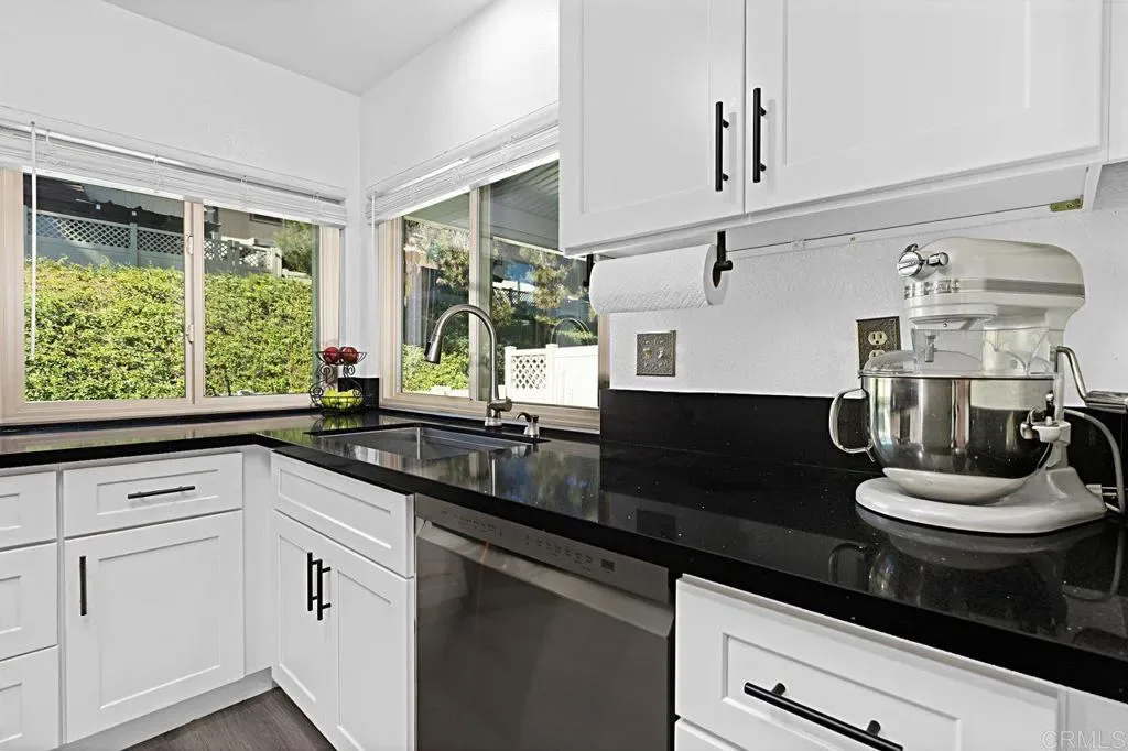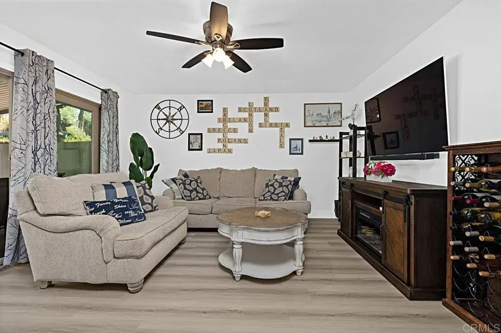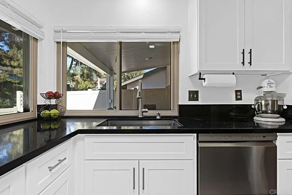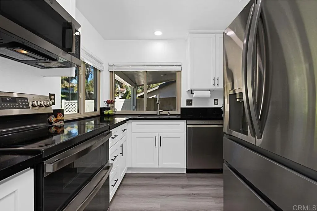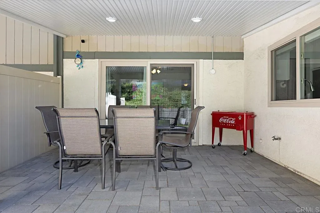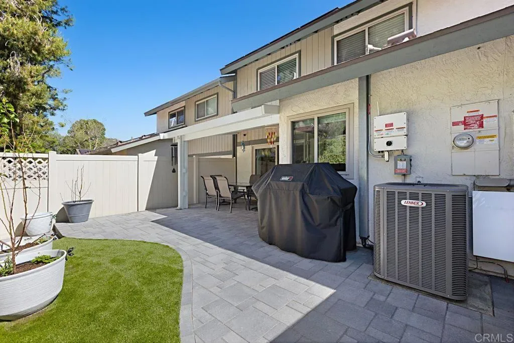 Turnkey Upgraded Home with Private Yard – A beautifully renovated home in a desirable Escondido community, offering modern upgrades, thoughtful design, and seamless indoor-outdoor living. The home has been meticulously updated throughout, showcasing brand-new water-resistant laminate wood flooring, fresh interior paint, and stylish finishes that create a bright, welcoming atmosphere. This exceptional residence features three bedrooms, including a highly desirable ground-floor bedroom that can serve as a private home office or comfortable guest room, perfect for today’s flexible lifestyle. Two fully remodeled bathrooms with custom tile finishes are conveniently located on each level. The main living spaces are designed for both comfort and functionality, featuring a spacious living room that flows effortlessly to the outdoors, creating a true indoor-outdoor living experience. A dedicated dining area complements the space, ideal for both everyday living and entertaining. The beautifully reimagined kitchen is positioned to overlook the backyard, allowing for natural light and a connection to the outdoor space. It features crisp white custom cabinetry, sleek black crystal quartz countertops, and stainless-steel appliances. Perfect for cooking while staying connected to gatherings inside and out. Step outside to a newly transformed backyard designed for low maintenance and year-round enjoyment. Complete with pavers, turf, and a new patio cover with inset lighting, dimmer controls, and multiple electrical outlets. This outdoor space is ideal for relaxing, BBQs or hosting gatherings. Additional upgrades include new dual-pane windows downstairs, a new sliding glass door, and a striking solid wood front entry door with wrought iron detailing and a security screen. The home also features a new water heater and a dedicated water line for a refrigerator water/ice dispenser. The attached one car garage has custom cabinetry for enhanced storage. Energy efficiency and comfort are enhanced with Sunrun solar paired with a Tesla backup system which will be fully paid by the Seller at close of escrow, a Nest smart thermostat, and new ceiling fans with dimmers throughout. Set within a well-maintained community featuring 2 pool, kiddie pools and park, and ideally located near shopping, dining, and major freeways. This turnkey home offers the perfect blend of convenience and lifestyle. A rare opportunity to own a fully upgraded home in one of Escondido’s most accessible locations. You won’t want to miss this one!