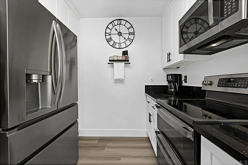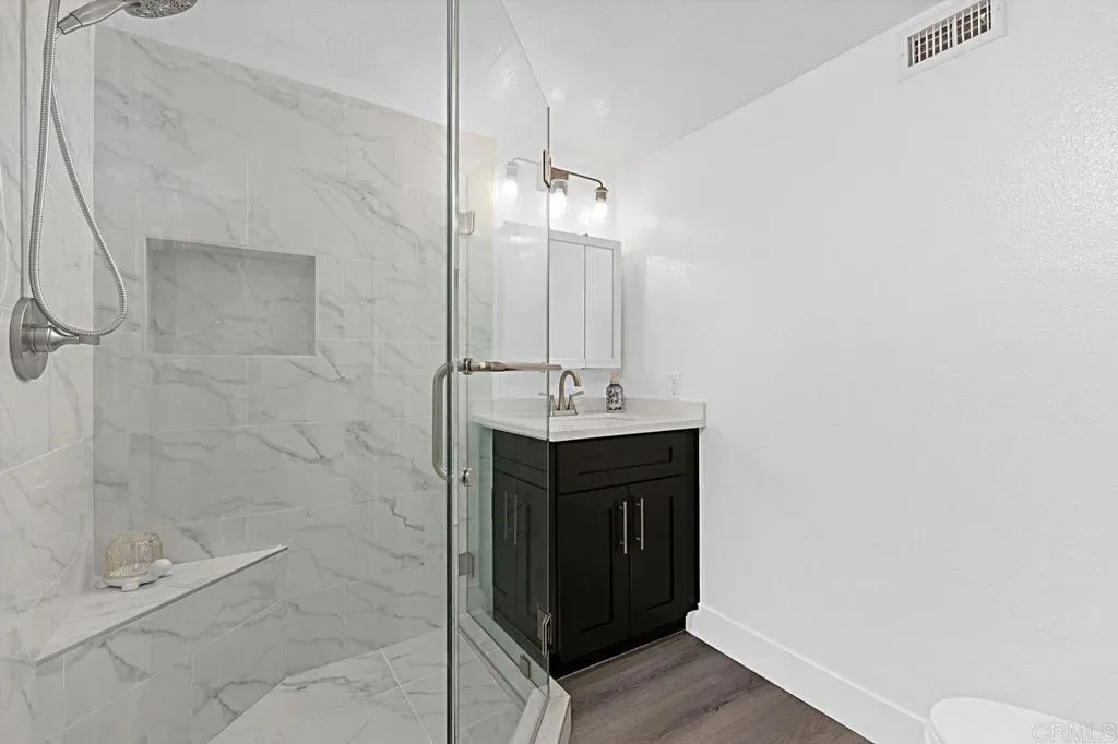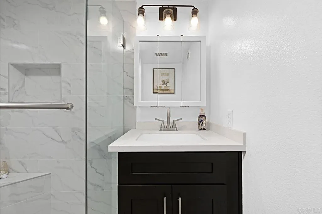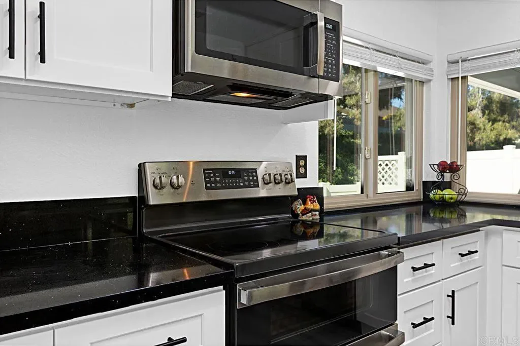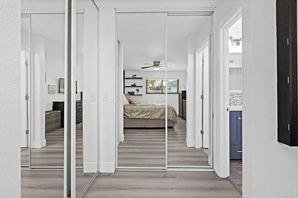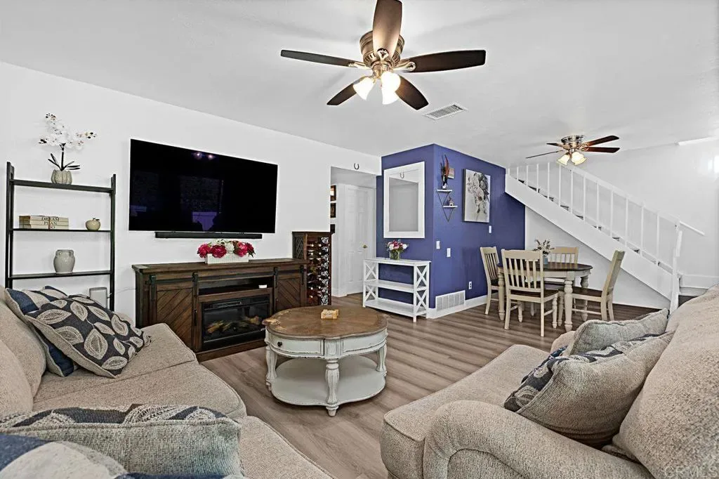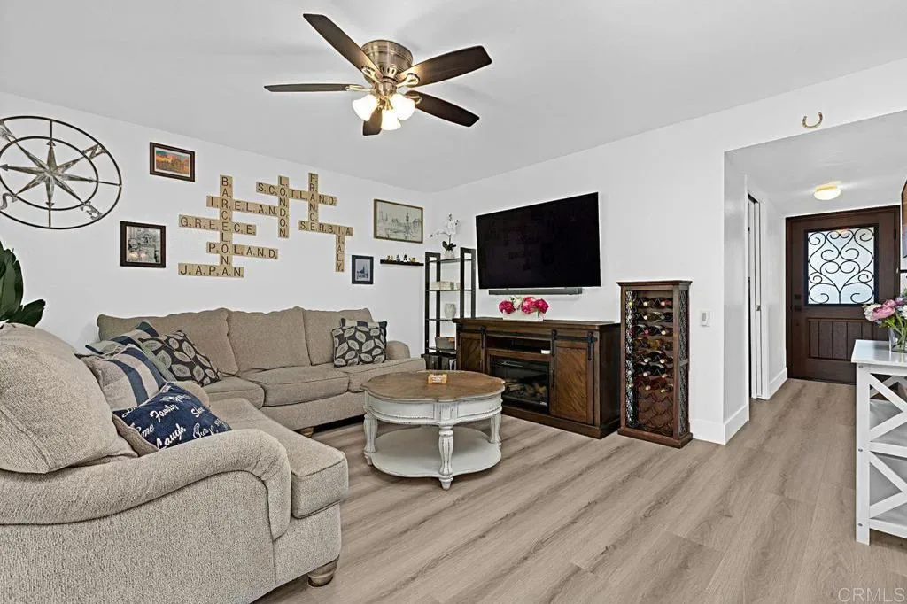 Turnkey Upgraded Home with Private Yard – A beautifully renovated home in a desirable Escondido community, offering modern upgrades, thoughtful design, and seamless indoor-outdoor living. The home has been meticulously updated throughout, showcasing brand-new water-resistant laminate wood flooring, fresh interior paint, and stylish finishes that create a bright, welcoming atmosphere. This exceptional residence features three bedrooms, including a highly desirable ground-floor bedroom that can serve as a private home office or comfortable guest room, perfect for today’s flexible lifestyle. Two fully remodeled bathrooms with custom tile finishes are conveniently located on each level. The main living spaces are designed for both comfort and functionality, featuring a spacious living room that flows effortlessly to the outdoors, creating a true indoor-outdoor living experience. A dedicated dining area complements the space, ideal for both everyday living and entertaining. The beautifully reimagined kitchen is positioned to overlook the backyard, allowing for natural light and a connection to the outdoor space. It features crisp white custom cabinetry, sleek black crystal quartz countertops, and stainless-steel appliances. Perfect for cooking while staying connected to gatherings inside and out. Step outside to a newly transformed backyard designed for low maintenance and year-round enjoyment. Complete with pavers, turf, and a new patio cover with inset lighting, dimmer controls, and multiple electrical outlets. This outdoor space is ideal for relaxing, BBQs or hosting gatherings. Additional upgrades include new dual-pane windows downstairs, a new sliding glass door, and a striking solid wood front entry door with wrought iron detailing and a security screen. The home also features a new water heater and a dedicated water line for a refrigerator water/ice dispenser. The attached one car garage has custom cabinetry for enhanced storage. Energy efficiency and comfort are enhanced with Sunrun solar paired with a Tesla backup system which will be fully paid by the Seller at close of escrow, a Nest smart thermostat, and new ceiling fans with dimmers throughout. Set within a well-maintained community featuring 2 pool, kiddie pools and park, and ideally located near shopping, dining, and major freeways. This turnkey home offers the perfect blend of convenience and lifestyle. A rare opportunity to own a fully upgraded home in one of Escondido’s most accessible locations. You won’t want to miss this one!