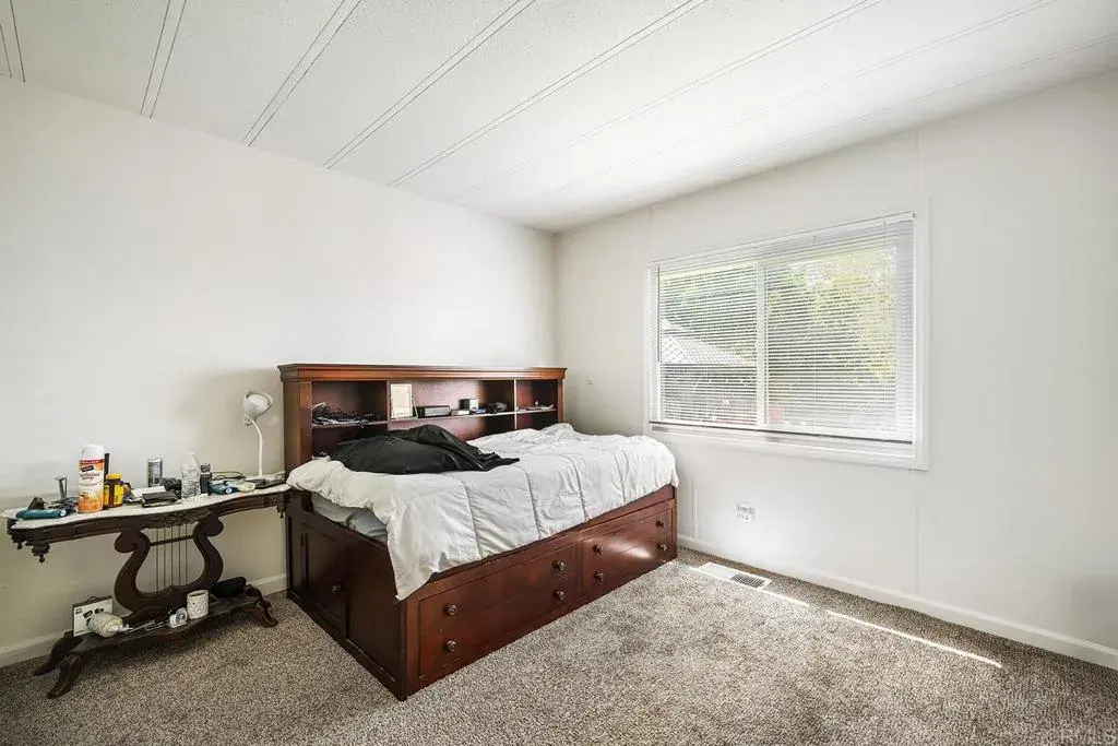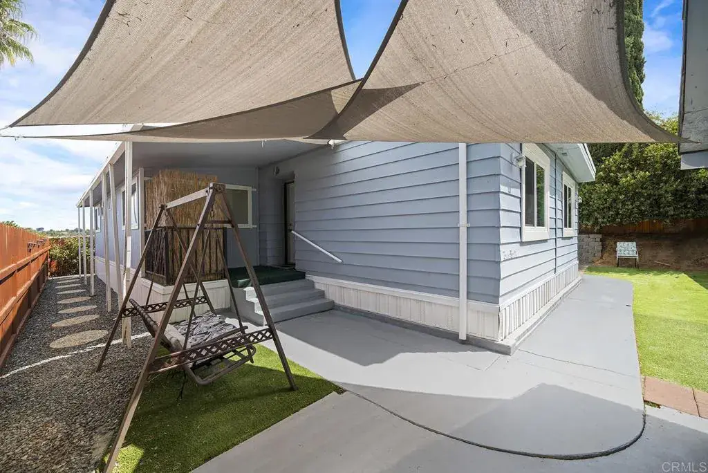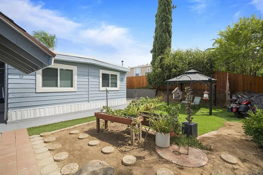 Welcome to this rare ALL-AGE, LAND-OWNED home in the GATED Escondido Views community—no space rent! This beautifully upgraded 4-bedroom, 2-bath home with a bonus room truly has it all—space, upgrades, and lifestyle—in one of Southwest Escondido’s most desirable neighborhoods. Inside, enjoy fresh interior and exterior paint, upgraded flooring, and a remodeled kitchen featuring stunning custom granite countertops, a huge eat-up peninsula, GE stainless steel appliances, and a gas range with griddle—perfect for any home chef. The open-concept layout flows to a spacious living room with a custom built-in entertainment center with an electric fireplace, accommodating up to an 80-inch flat screen. Imagine preparing meals at the peninsula while guests relax by the fireplace! Step outside to impressive curb appeal featuring beautiful landscaping—low-maintenance pavers, pea gravel, turf, and one of the community’s most spacious view lots—ideal for entertaining. The new fence and retaining wall offer privacy, while the upgraded carport with curved supports provide space for up to 5 vehicles. A large 13×15 shed offers plenty of storage or workshop space. Thoughtfully upgraded and maintained with energy-efficient dual-pane windows, regular roof coatings (most recent in August), and newer subflooring and skirting, this home is truly move-in ready. The spacious and functional split floor plan features a private primary suite with two closets and a remodeled bath, along with three secondary bedrooms, a full bath, and a flexible bonus room that can serve as a home office, hobby space, or even a fifth bedroom. For a low HOA of just $268/month, enjoy resort-style amenities: swimming pool, kiddie pool, spa, cabanas, fitness center, clubhouse, game rooms, playground, and basketball court. All this within walking distance of shopping, dining, banking, and just minutes to Lake Hodges, public transit, and major freeways. Part of the acclaimed Escondido Union School District, including Bernardo Elementary, Bear Valley Middle, and San Pasqual High, plus nearby Classical Academy.