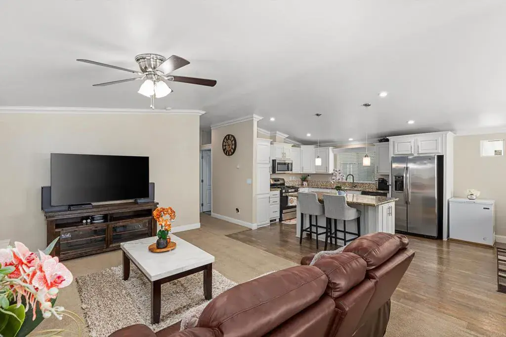 Newer 3 bed / 2 bath built in 2018 and located in an ANY Age / Family community! Feel good about reducing your carbon footprint and lowering your impact on the environment while you reap the benefits of reduced energy costs due to the SOLAR installed on this home. Buyer to assume solar loan and monthly payments of approx. $247, which have replaced a much higher monthly electricity bill. As one more added benefit, the homeowner receives a reimbursement for solar energy not used by True Bill annually. This beautiful home boasts an open floorplan with a lovely Island Kitchen with stainless steel appliances, recessed lighting and a spacious dining bar. The Primary Suite offers a walk in closet and an ensuite Bathroom with double sinks and a separate tub and shower. This Cavco “Sedona Ridge” has many factory upgrades including vaulted ceilings, crown and baseboard molding, cornice window boxes, wood window sills, lever door handles and switches, and so much more! 4 ceiling fans in addition to Central A/C for comfort. The exterior offers a front porch, spacious covered carport for up to 3 vehicles, and a convenient storage shed. Monthly space rent is only $1,039.63 per month! Community offers social activities and many amenities including a clubhouse, pool, spa, basketball court, game room, work out room, billiards, dog park, and much more! This community has no age restrictions and allows 2 indoor pets per household (breed restrictions apply).